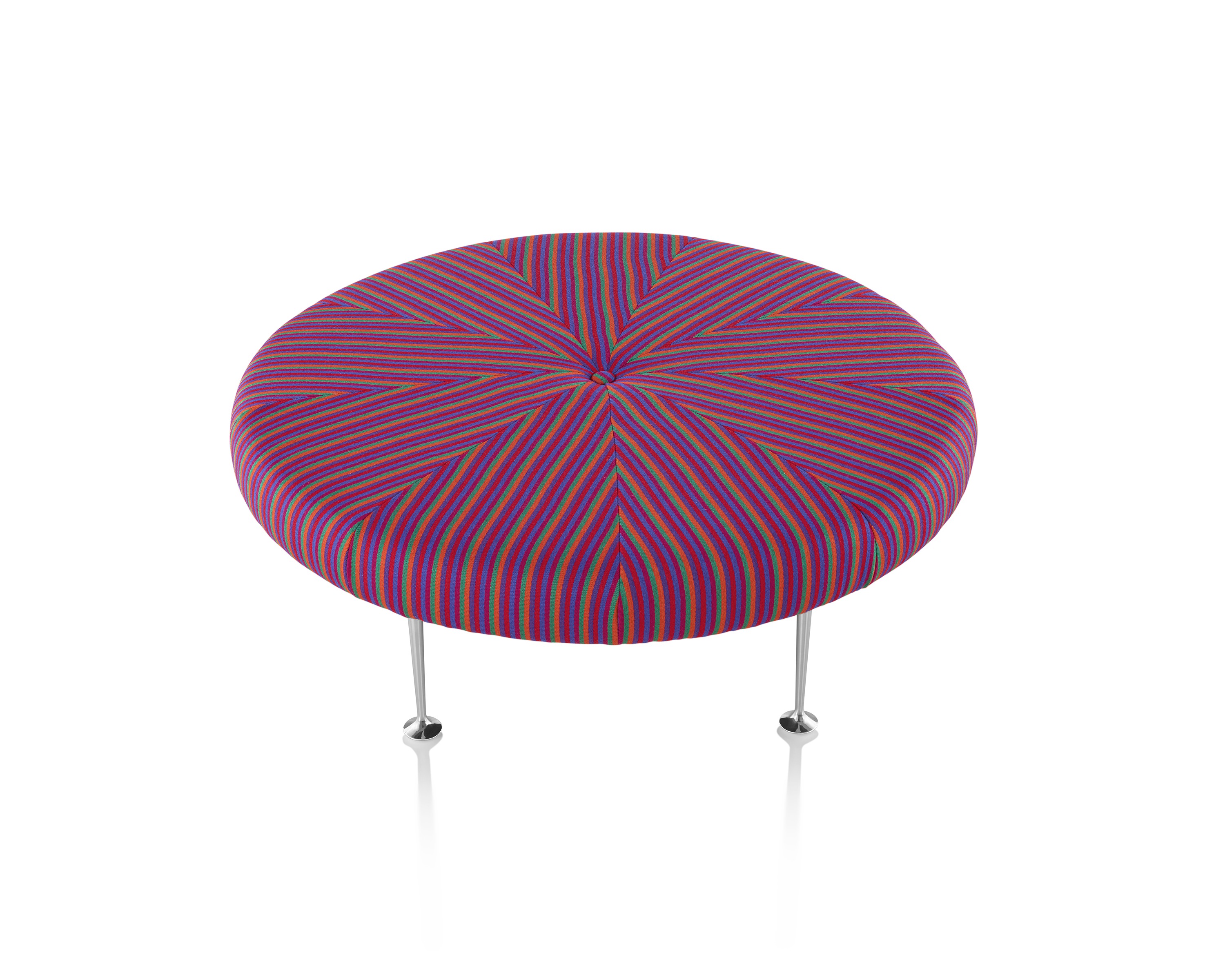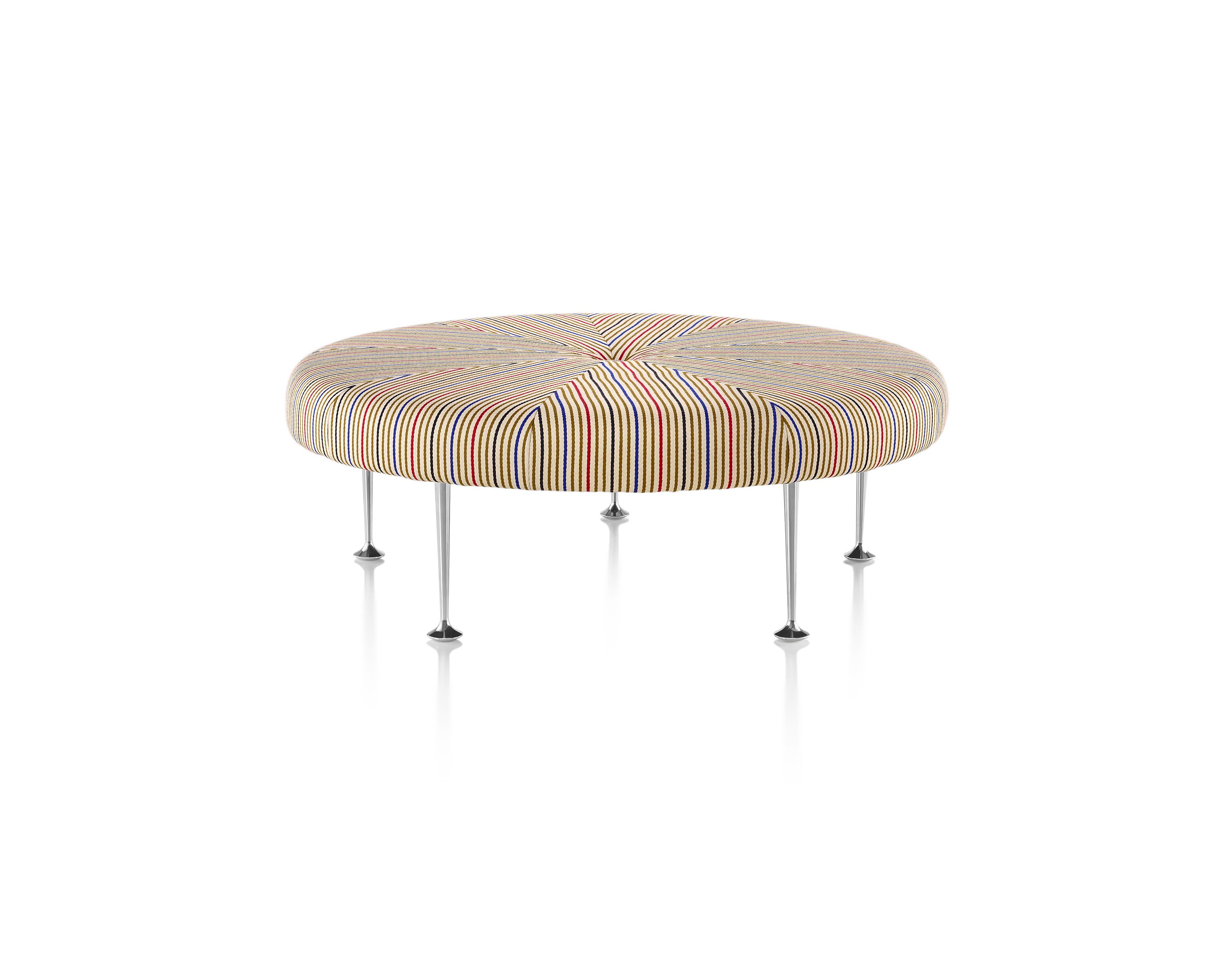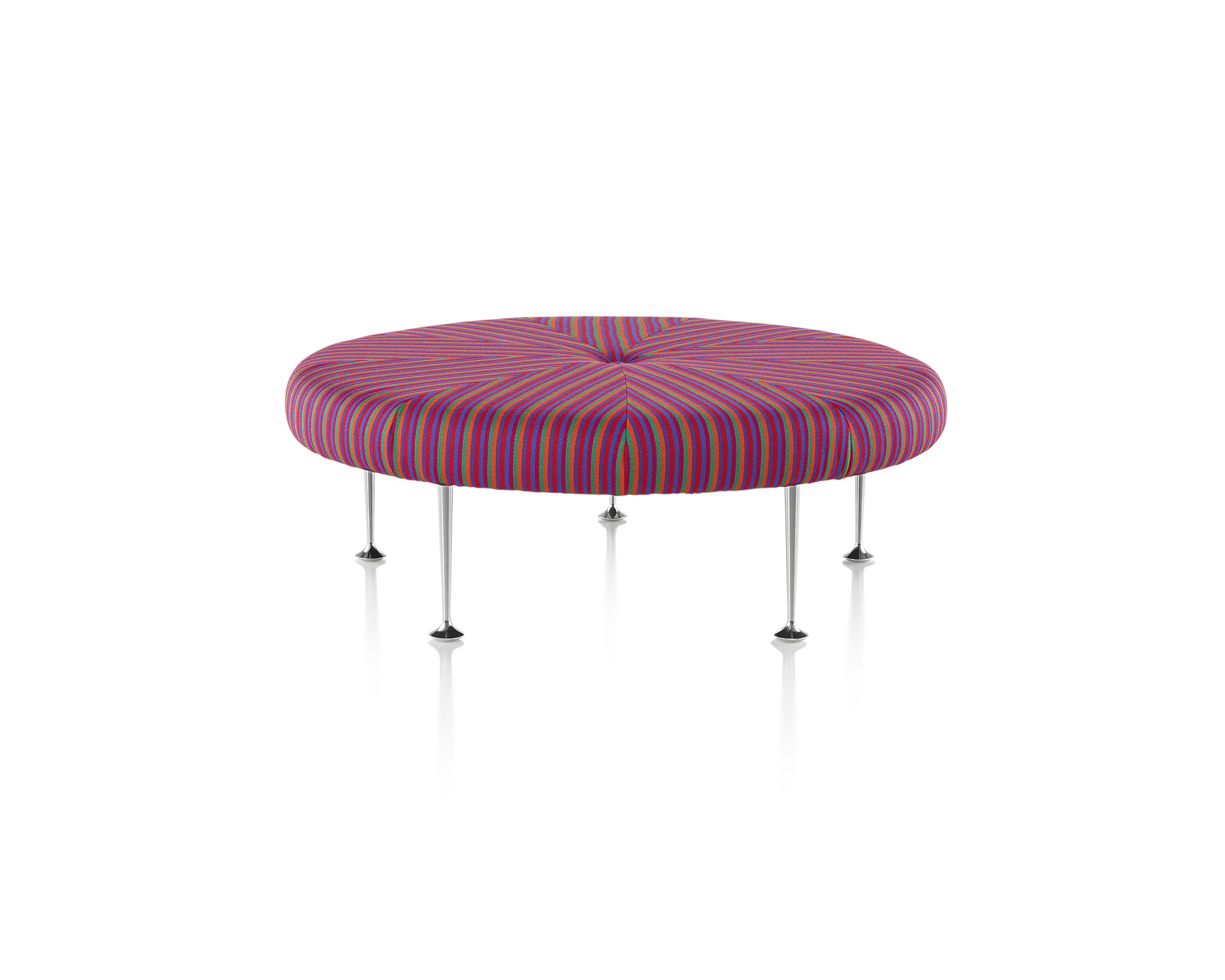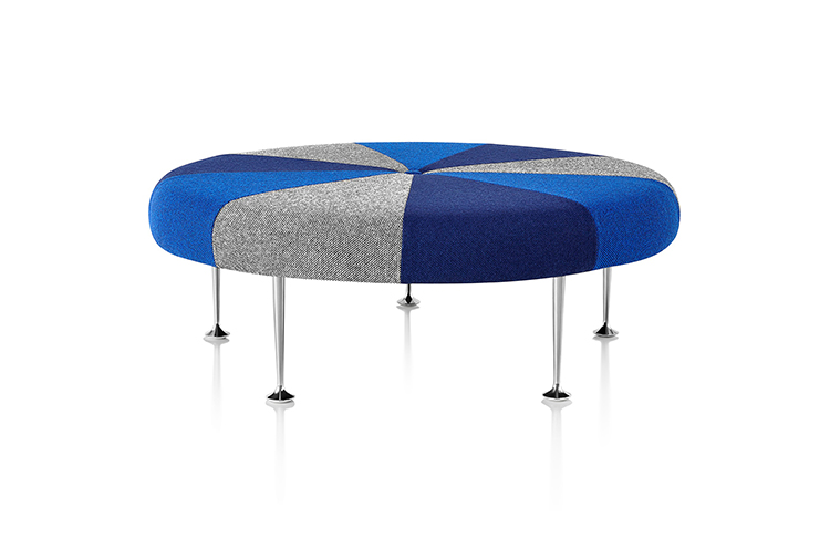 Girard彩色圆轮脚凳俏皮可爱、色彩艳丽,图案丰富,毫无疑问是Alexander Girard的作品。这段低矮的软垫休闲椅提供大胆靓丽的配色或醒目的条纹图案选择,可作为脚凳、咖啡桌、加座或者聊天椅。