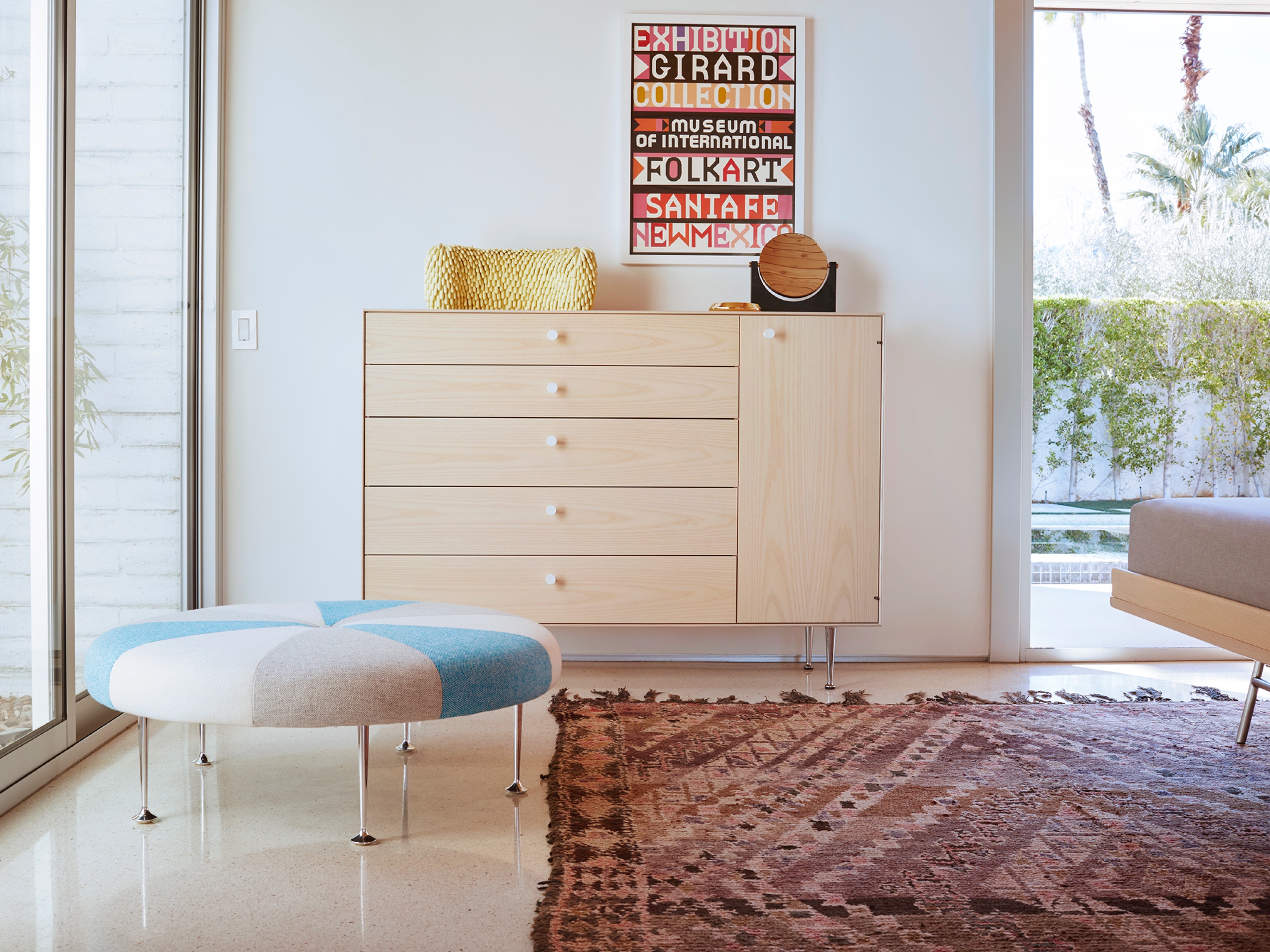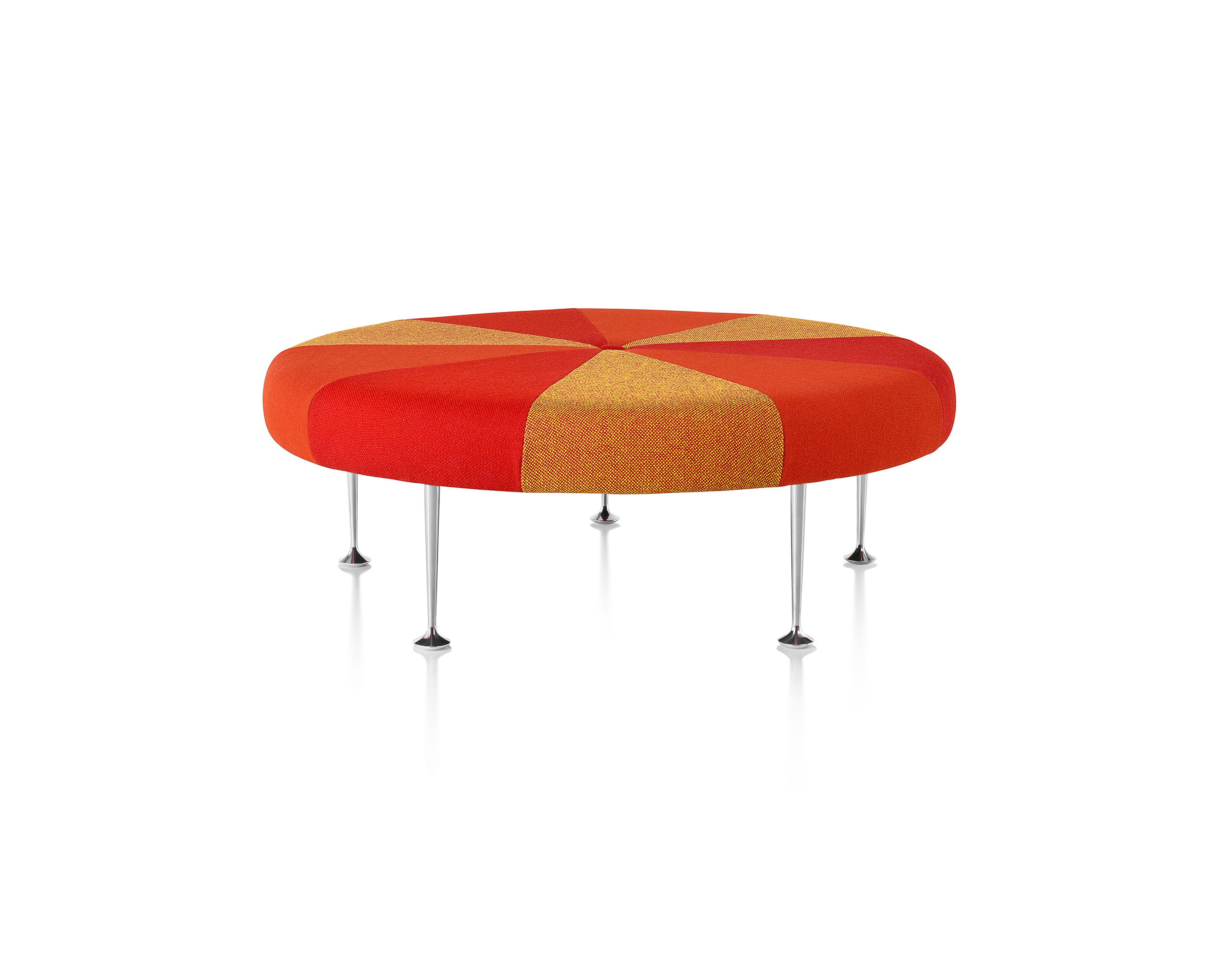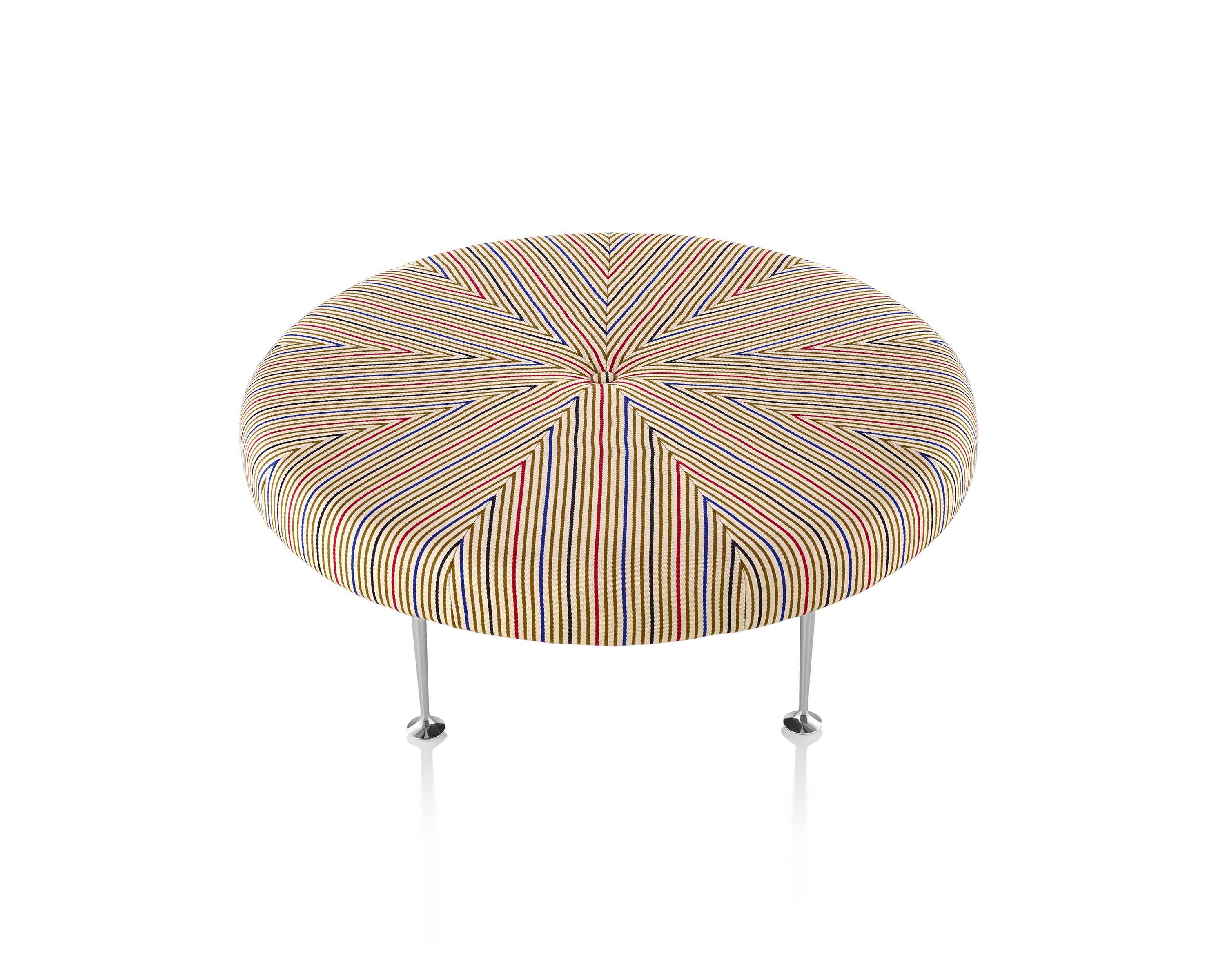 Girard彩色圆轮脚凳俏皮可爱、色彩艳丽,图案丰富,毫无疑问是Alexander Girard的作品。这段低矮的软垫休闲椅提供大胆靓丽的配色或醒目的条纹图案选择,可作为脚凳、咖啡桌、加座或者聊天椅。