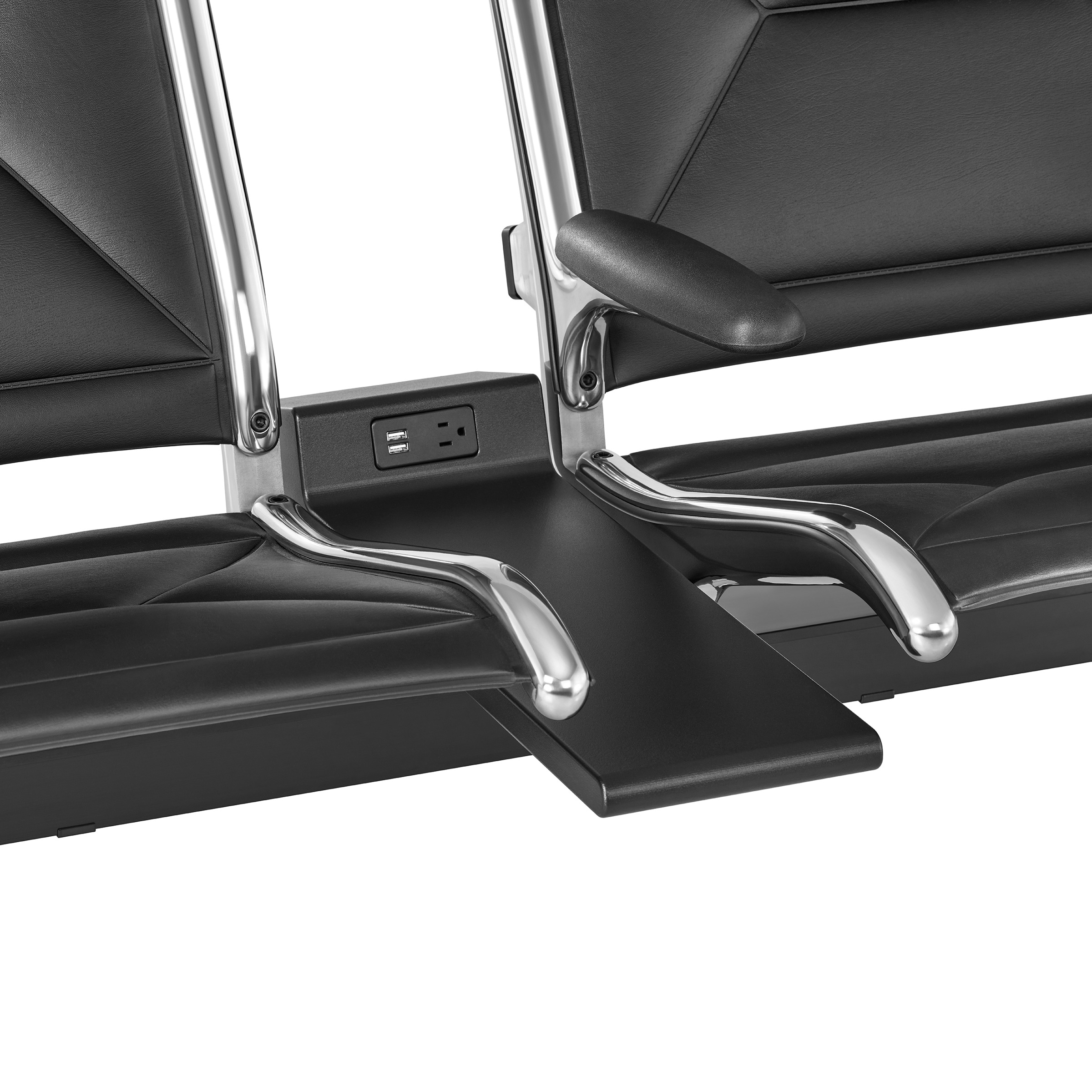 走过任何机场,您会发现有多少旅行者坐在地上给自己的手机充电,或者围聚在成排的座椅尽头、集中的充电接口附近。Eames Tandem Sling座椅配置有充电模块,均匀分布在座椅和桌子之间,每个模块上都有USB和交流电源两种选项。座椅上的LED照明灯让人可以轻易地找到这片充电的乐土,可以坐下来休息和放松,无需再四处奔波寻找电源。
