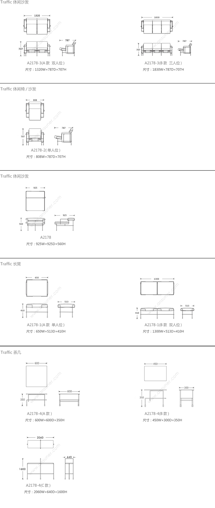 Traffic 系列尺寸/示意图