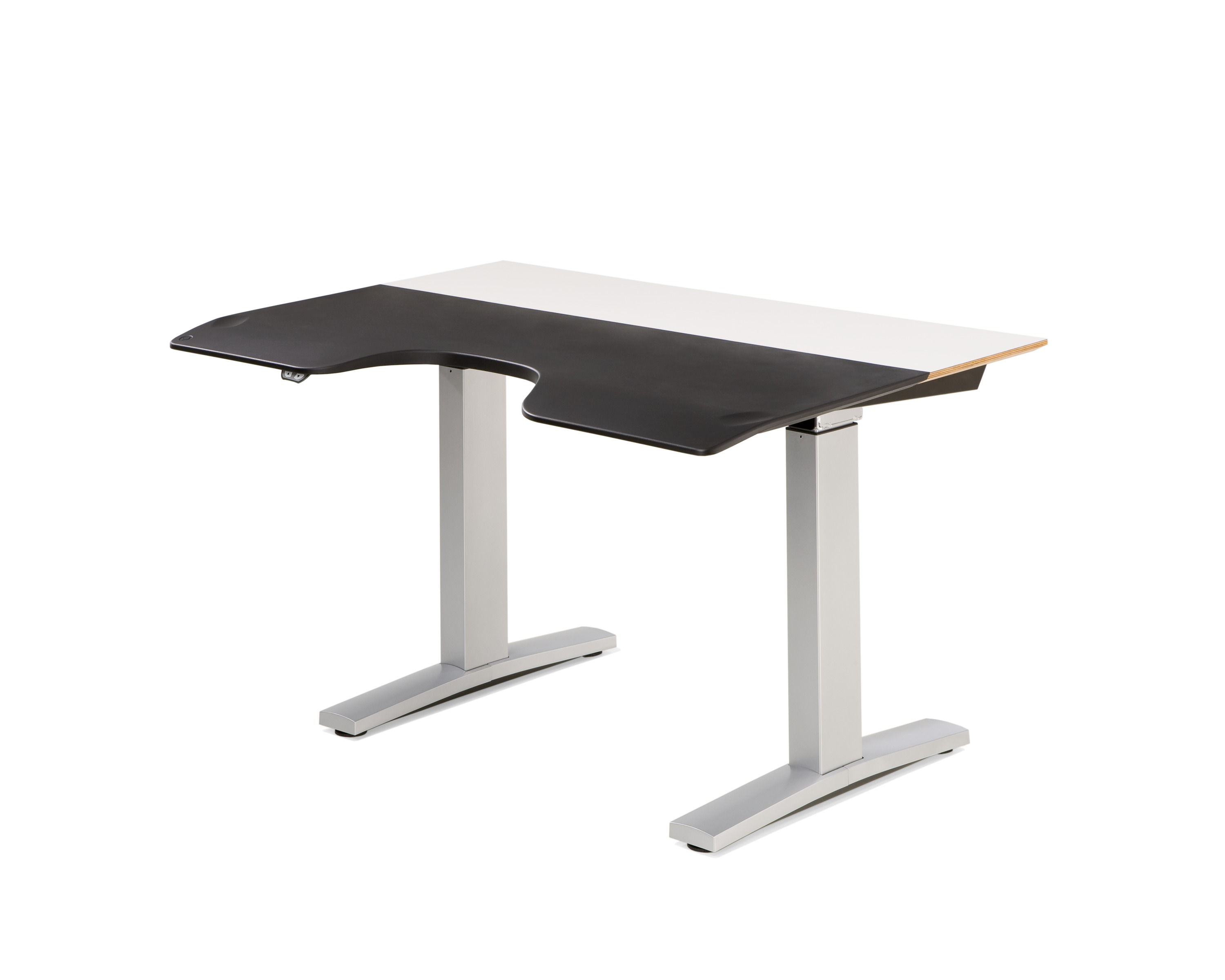 人会动,座椅也会动,为什么桌子就不能动呢?Envelop有着灵活的工作台面,在工作时可以滑动将您包围,是首款帮助您、座椅、工作台面和您的技术协调工作的办公桌。可使用标准销轴高度调节或坐姿-站姿高度可调桌腿,Envelop可以全面支持健康的坐姿与站姿。