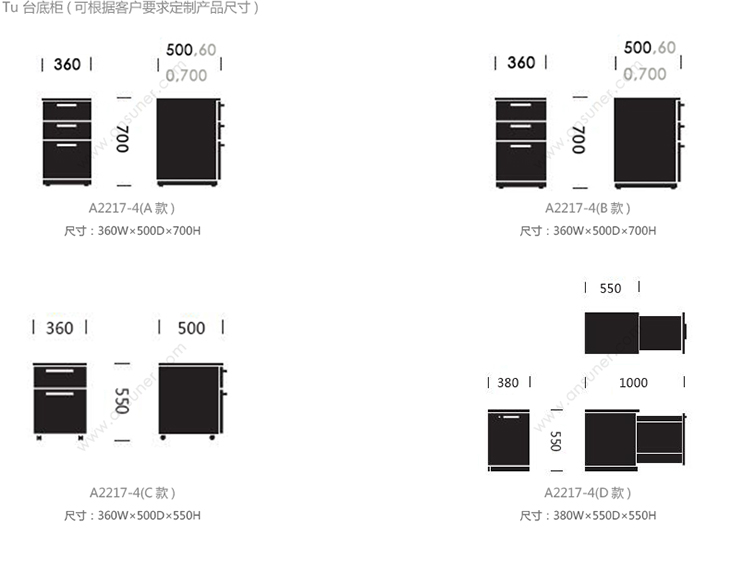 Tu 台底柜 系列尺寸/示意图