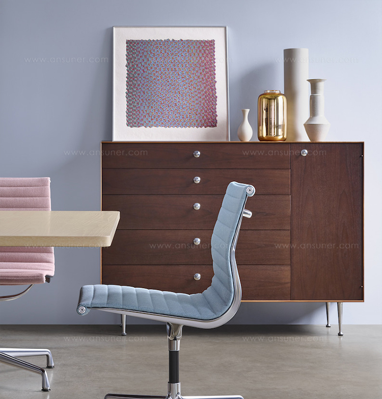 除了Nelson Thin Edge存储组合之外,还提供了一组扩展选项,使典型的纳尔逊美学进入卧室和其他地方。 它是乔治·尼尔森正在努力标准化和组织日常生活的对象,并以最低限度和最实际的方式去完成它。创造优雅的存储是他一生工作的重要部分,因此他的沙发和椅子是如此的令人愉快。