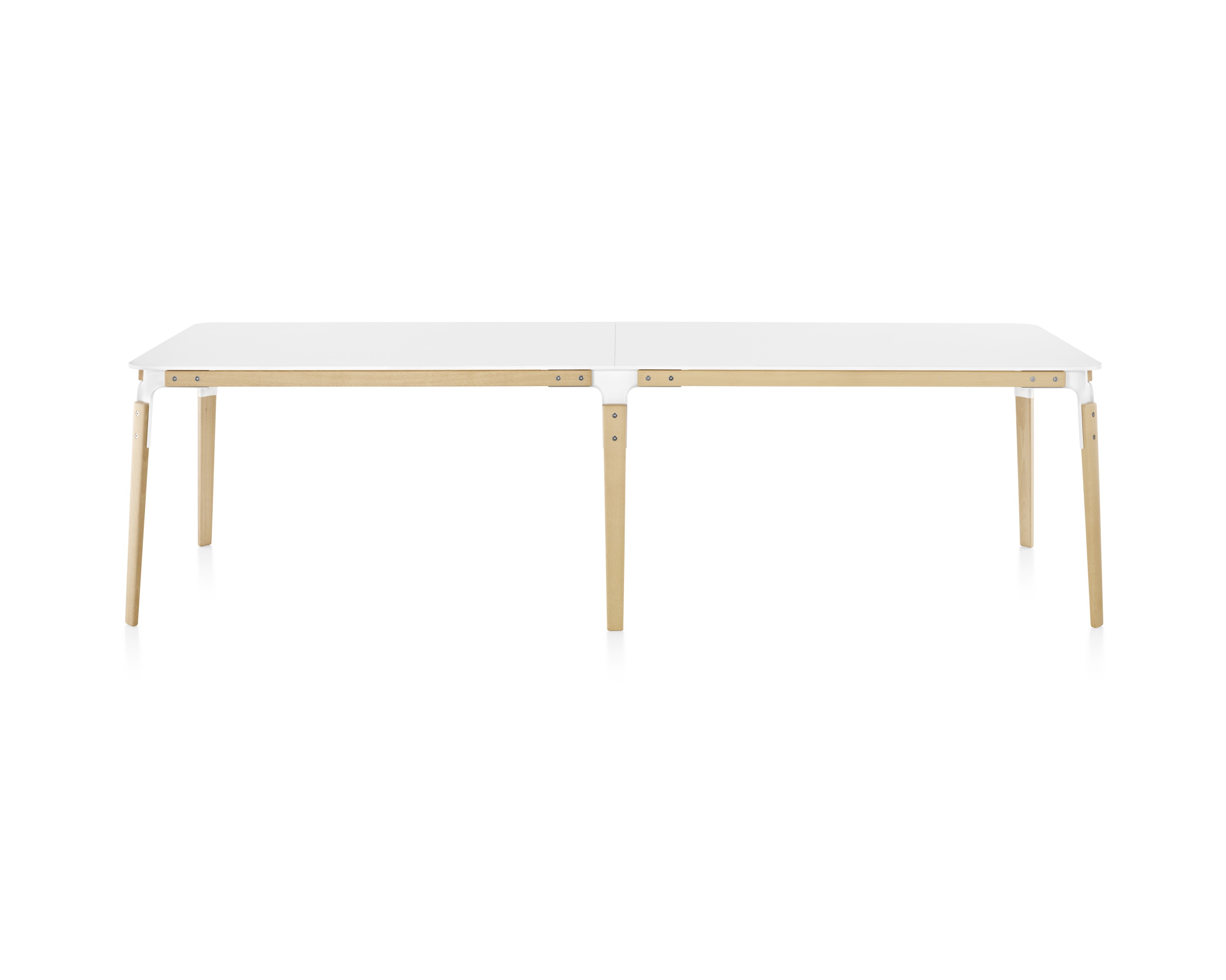 如果你对这张可爱的、持久的桌子实在是爱不释手,那么也许是时候添加一些东西了。矩形钢木桌系统和扩展可在相同的完成与原来,并提供额外的空间会议和餐饮。