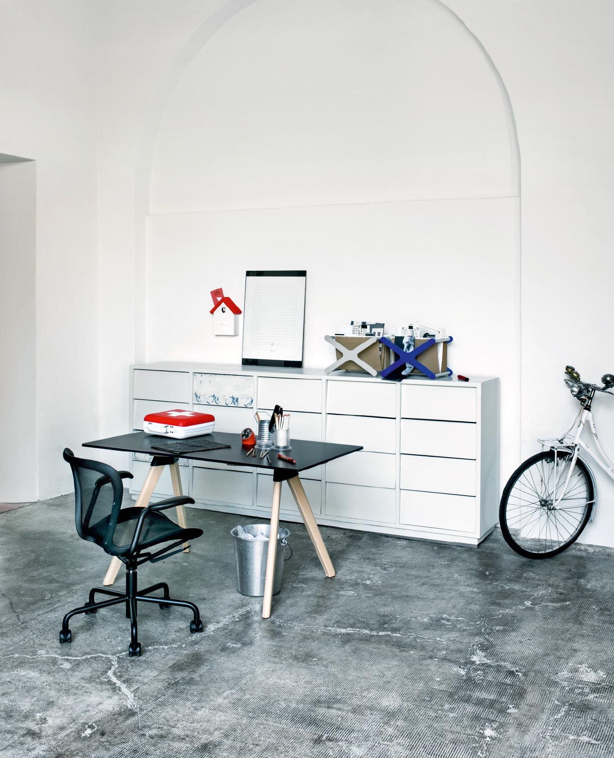 与系列中的所有产品一样,Butch table的特色是一个实心山毛榉框架和注塑聚丙烯接头,以及一个矩形的HPL(0.5英寸厚)顶部,有两种尺寸和两种颜色(白色和黑色)可供选择。黑色的HPL上衣可以防指纹。