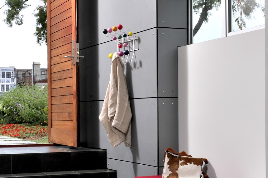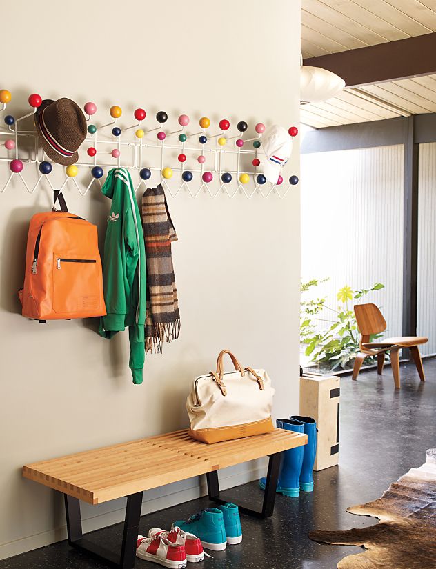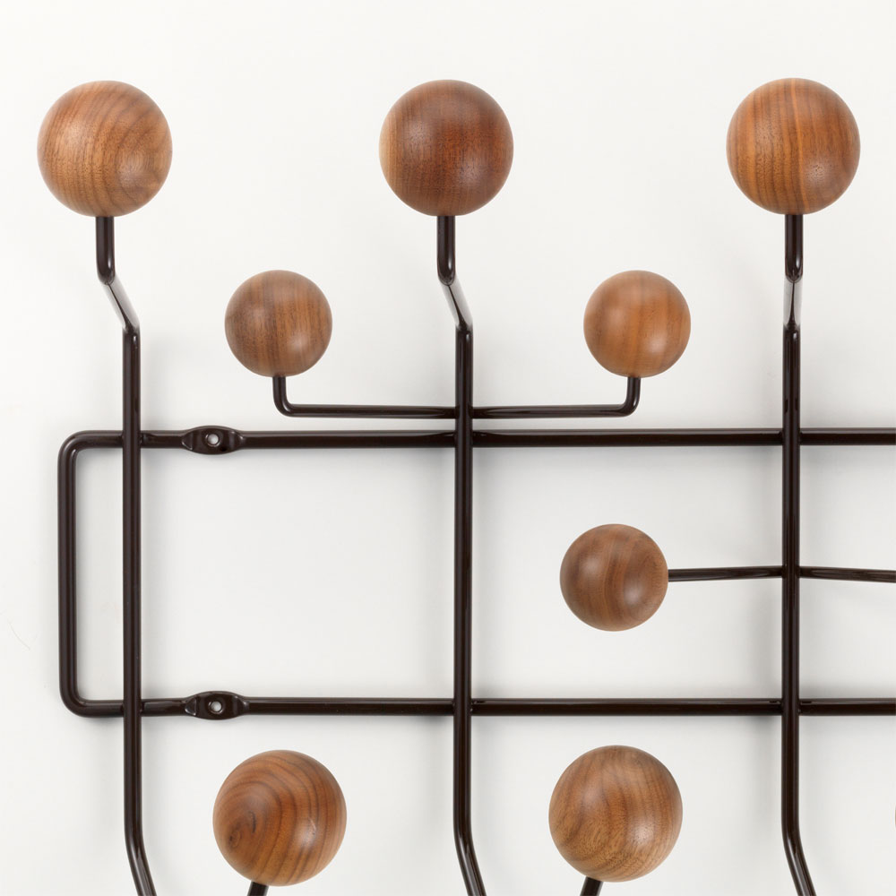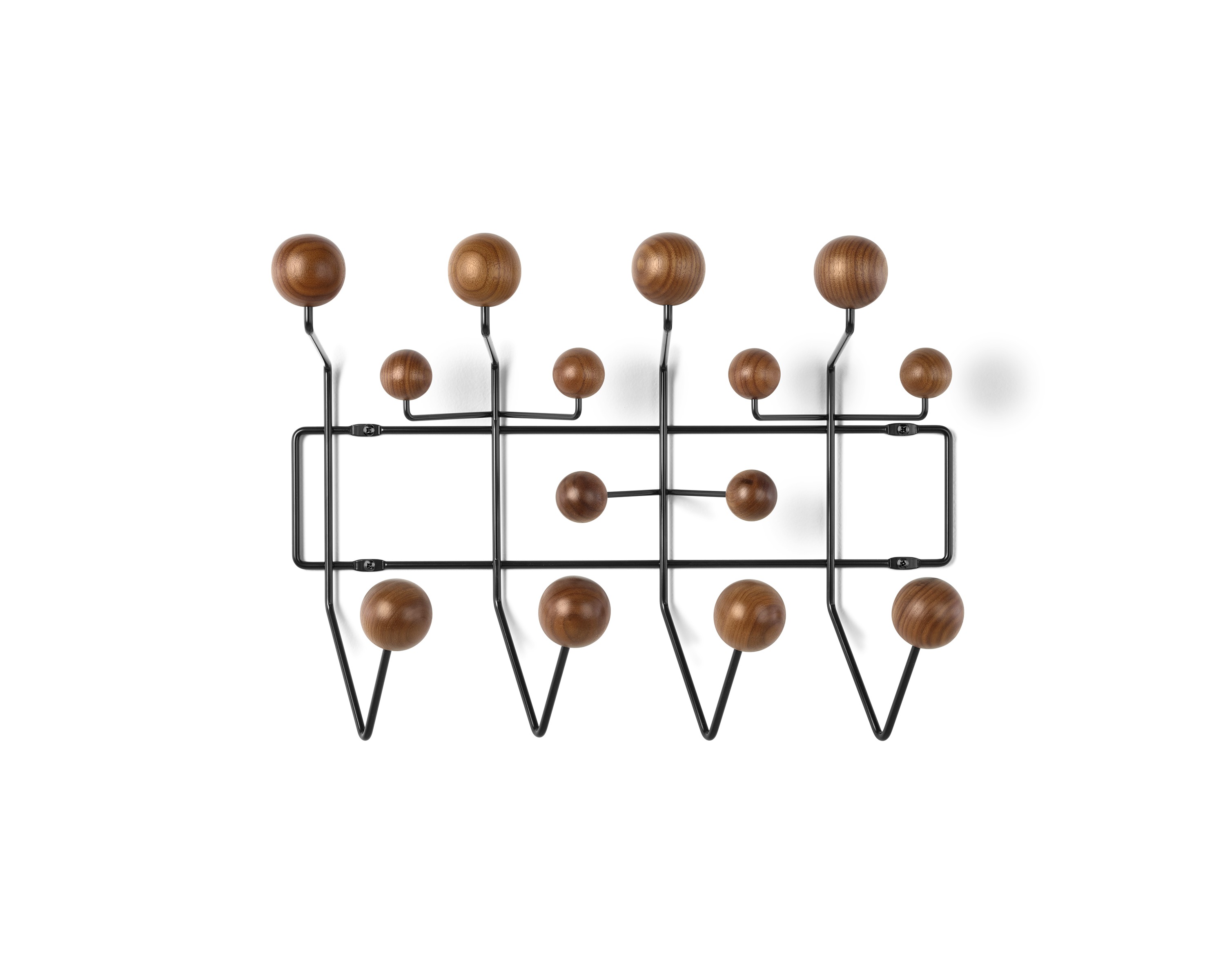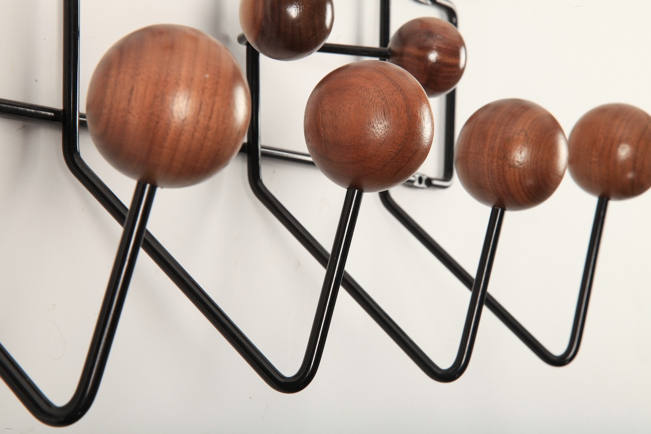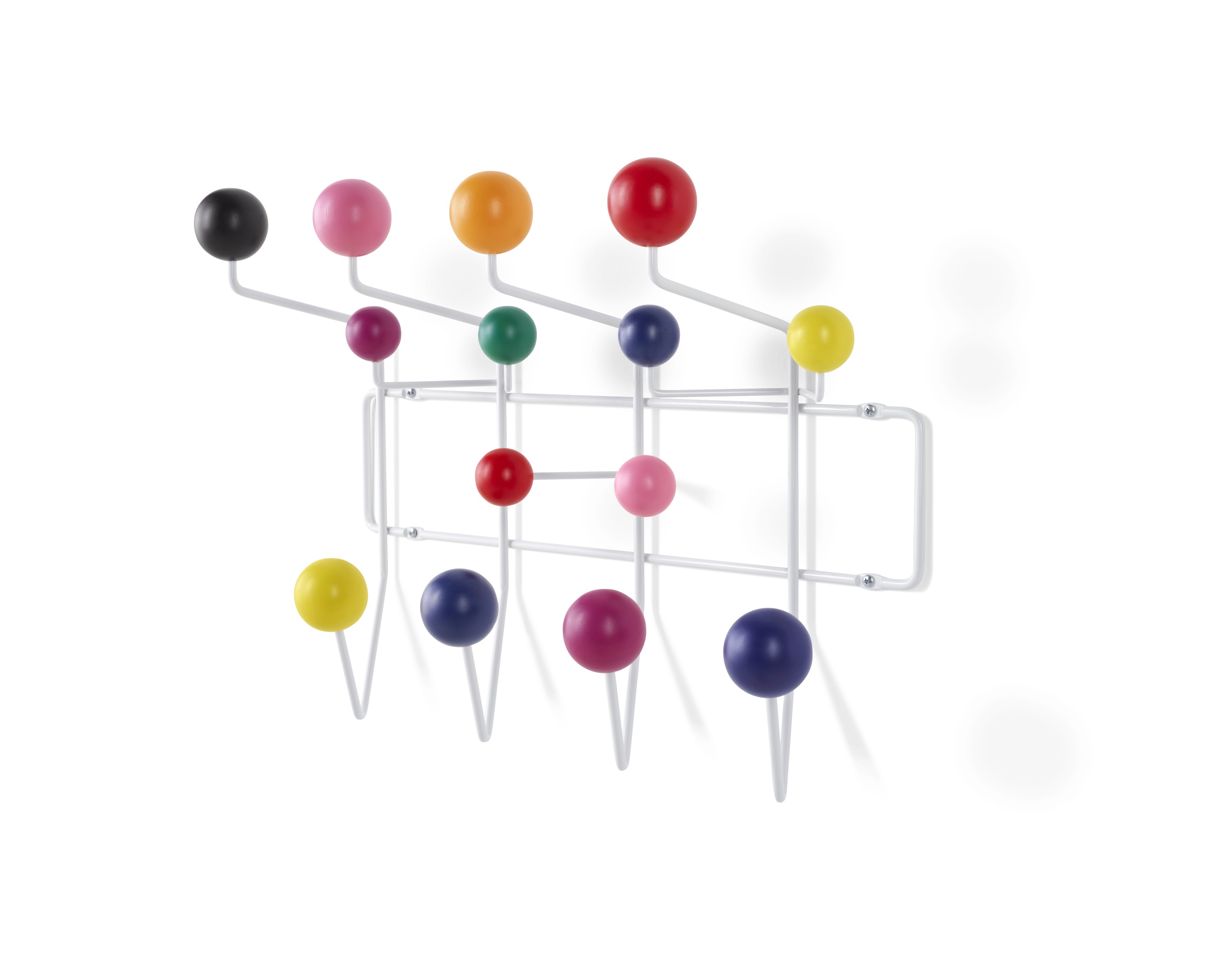 查尔斯和雷·埃姆斯把他们的衣架全部挂起来,把日常的衣架提升到一种创造性和趣味性。最初是用多色的挂钩和白色的金属线框制作而成,从那以后,它的材质和配色都更加忠实于原作的复杂和玩味。
