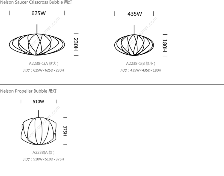 Nelson Saucer Crisscross Bubble 系列尺寸/示意图
