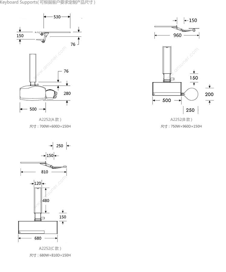 Keyboard Supports 系列尺寸/示意图