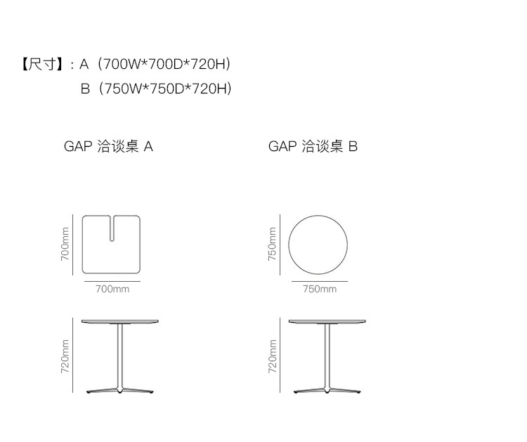 GAP 洽谈桌 系列尺寸/示意图