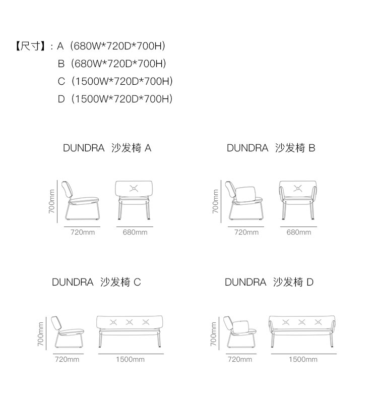 DUNDRA 沙发椅 系列尺寸/示意图