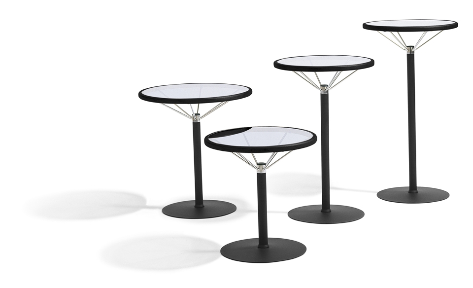L1 -L1是带玻璃桌面和钢制框架的桌子。L1易于用作餐具柜或小型茶几,也可以用作站立式桌子。L1有四种高度可供选择,并且桌面三种不同的直径。