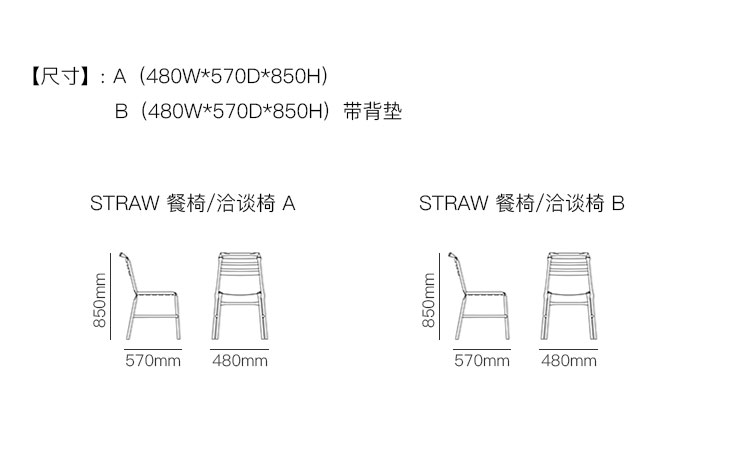 STRAW 餐椅/洽谈椅 系列尺寸/示意图