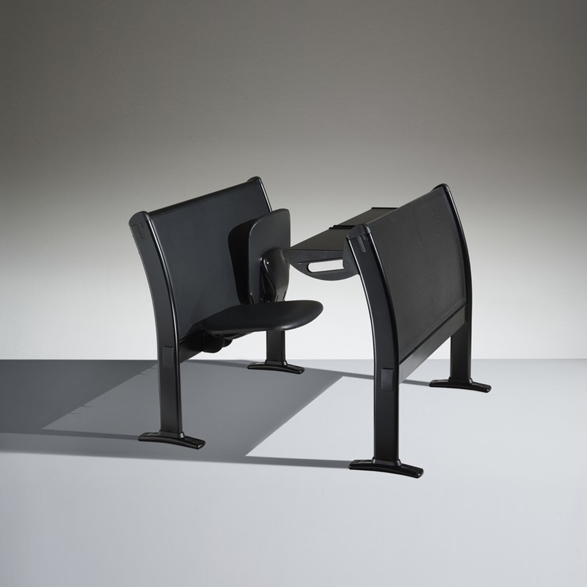 多功能的桌子和座椅系统,可放置两三个位置,直排模块化,非常适合大学,培训室或教学。特别注意结构的细节以及机芯的合理化,以确保较高的技术性能和抵抗力。该结构包括一个钢制地板支架,一个椭圆形的管脚以及一个由矩形管制成的水平连接梁,一个可用胶合板或模压板制成的连续靠背板。工作台由带ABS边缘的双层托盘组成,有固定版本,可折叠或带有防恐慌系统可伸缩。