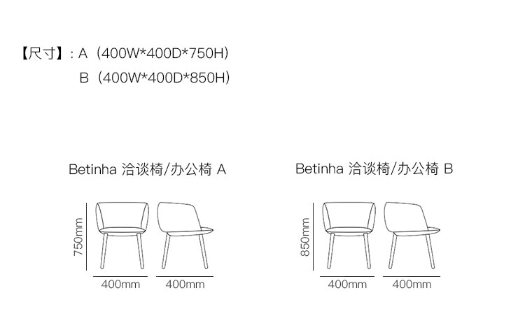 Betinha 洽谈椅/办公椅 系列尺寸/示意图