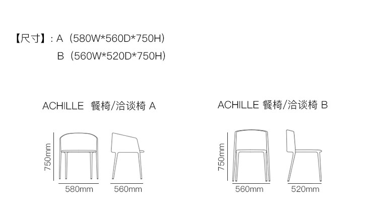 ACHILLE 餐椅/洽谈椅 系列尺寸/示意图
