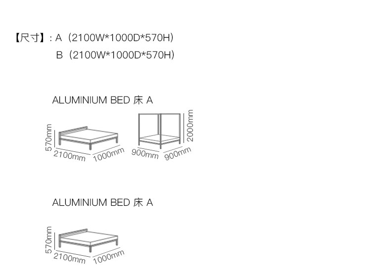ALUMINIUM BED 床 系列尺寸/示意图