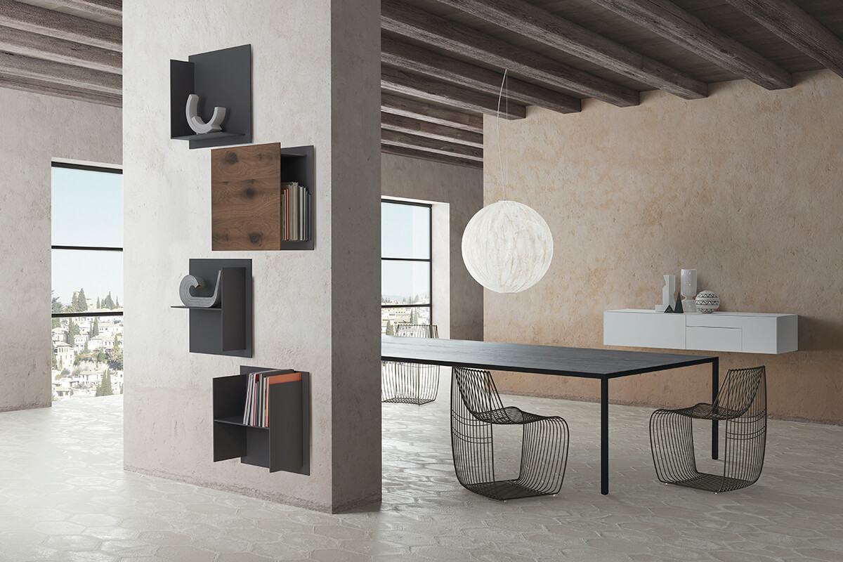 广场设有一个简单的设计,免费超级FL uous的,从装饰自成一家,其几乎没有侵入性和中性的设计可轻松的对话与其他标志或离散融合了各种产品。 它的存储功能是可见和隐蔽。广场一直研究,开发出的组合物的无数个具有显着的容量时的时间。以适应空间,并获取变化 的类型和表面处理 元件是在单色版本白色和中灰可用。 每个模块由覆盖上的音响breboard面板的正面为白色或中灰色Fenix层压板,背面为白色或中灰色聚合板。高压全色Fenix层压板货架,白色和中灰色。 ELEMENT X:简单面板 ELEMENT Y:带双层搁板的面板,深度18cm ELEMENT L:带有L形搁板的 面板,深度18cm ELEMENTT:带有T形搁板的面板,深度18cm ELEMENTC:带有C形搁板的面板,深度25cm ELEMENTH:带有H形搁板的面板,深度为25cm ELEMENTH:带有H形搁板的 面板,深度为25cm 某些材料还可以采用木材,黄铜, 再生石材和黑铁的材料版本:ELEMENT X:由纤维板制成正面用木头,黄铜,重建的石头或黑铁覆盖,背面用白色或中灰色聚合板覆盖; Z元素:由纤维板制成,正面用木材,黄铜,重建的石材或黑铁覆盖,背面用白色或中灰色聚合板覆盖。高压全色Fenix层压板搁板,白色和中灰色。