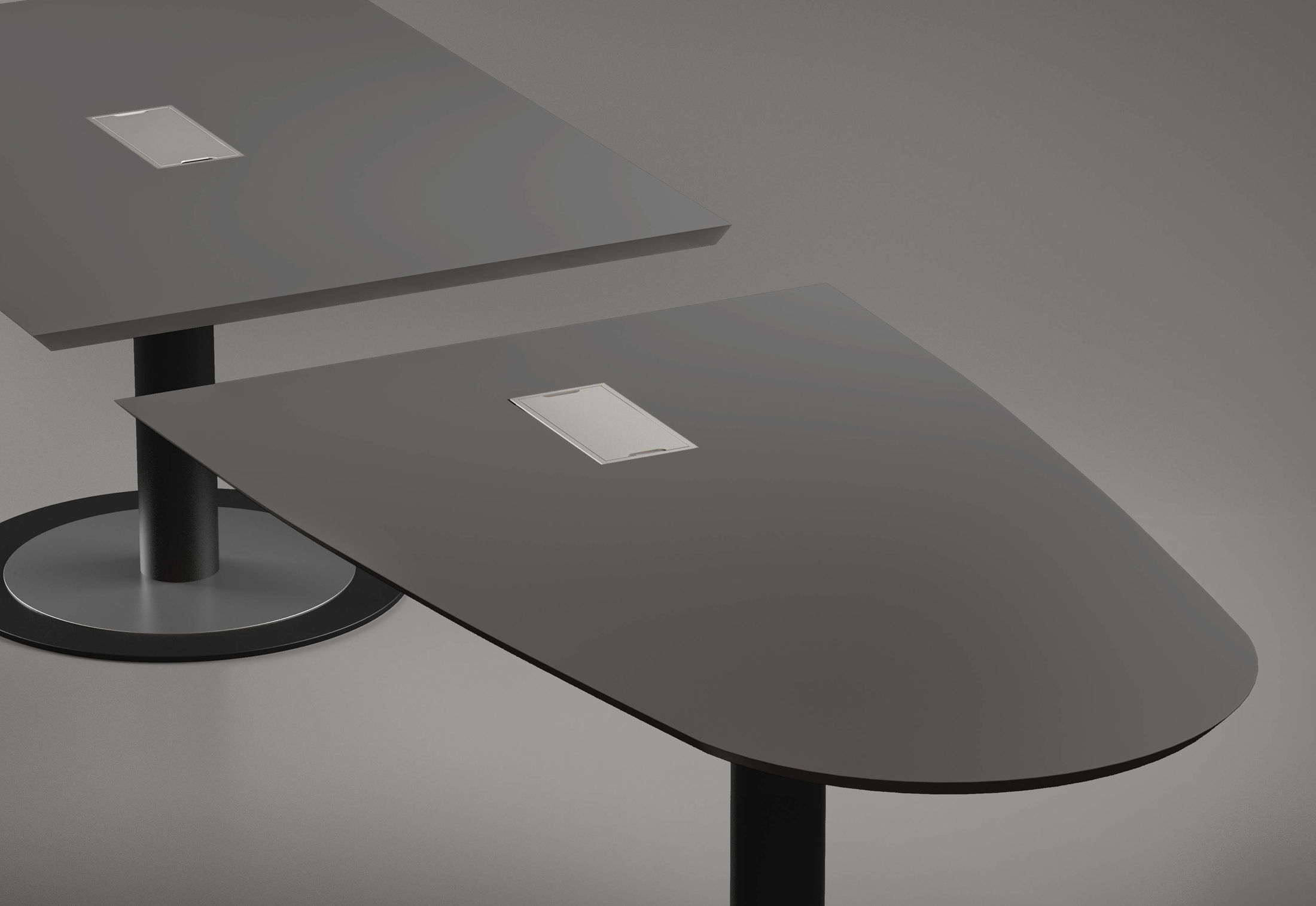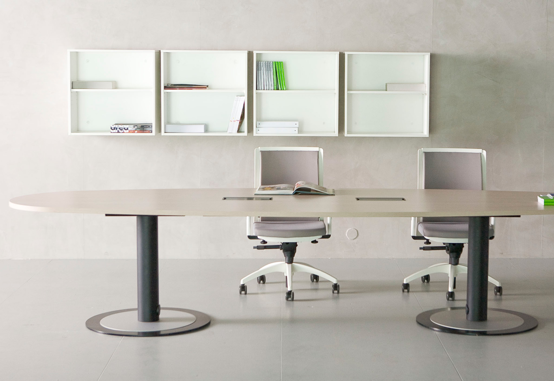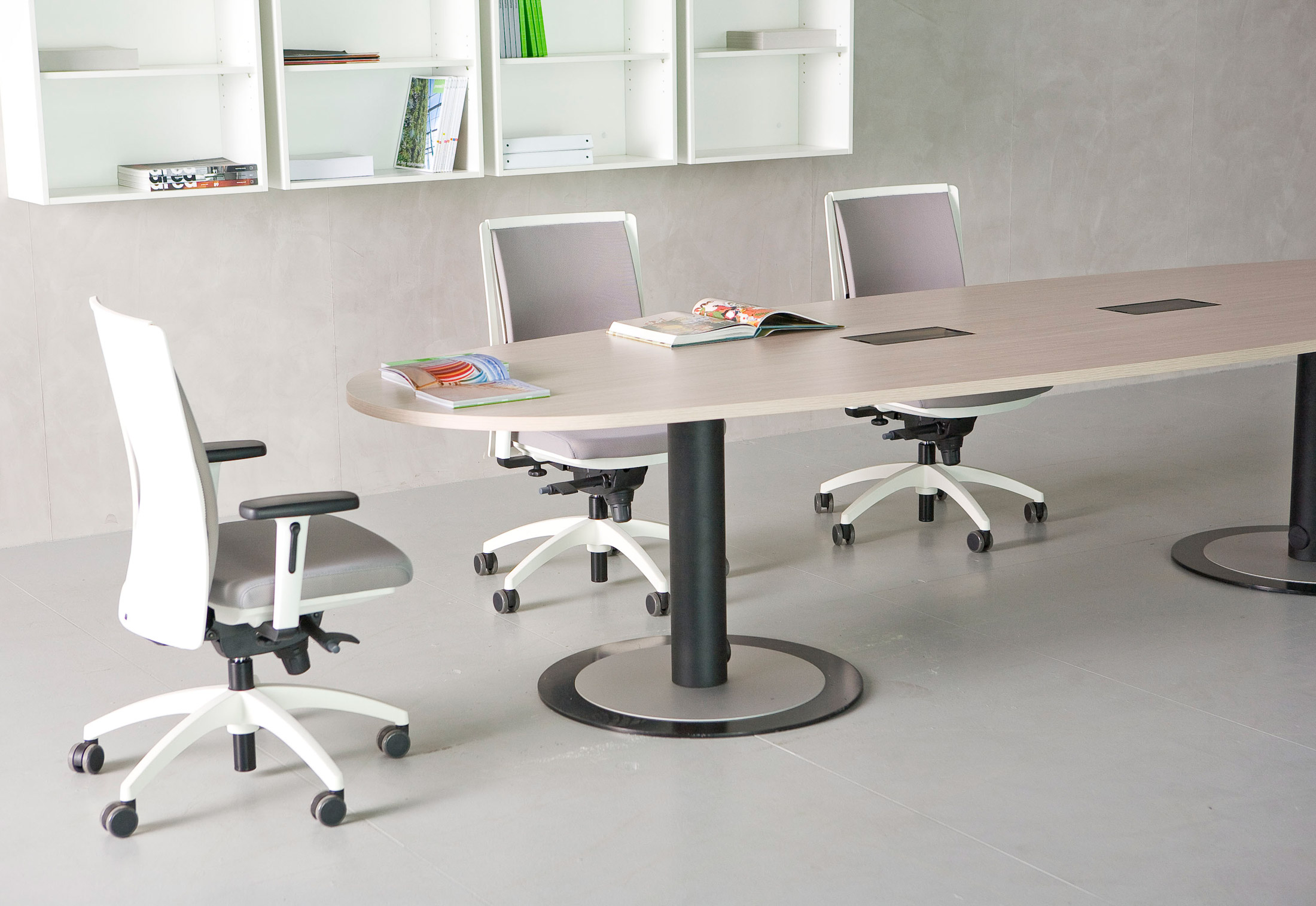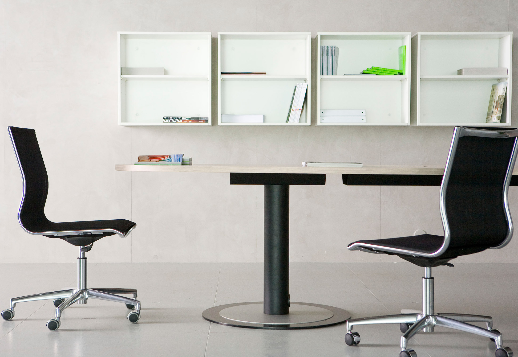 Fantoni提供一个完整的会议桌会议,会议桌有固定的顶部或模块化的形式,可以创建您自己的作品并满足最大范围的需求:从小型会议室到大型会议室。橡木,红色或棕褐色樱桃木或天然桦木。它们由圆盘形底座上的重要支柱支撑,均由钢制成。