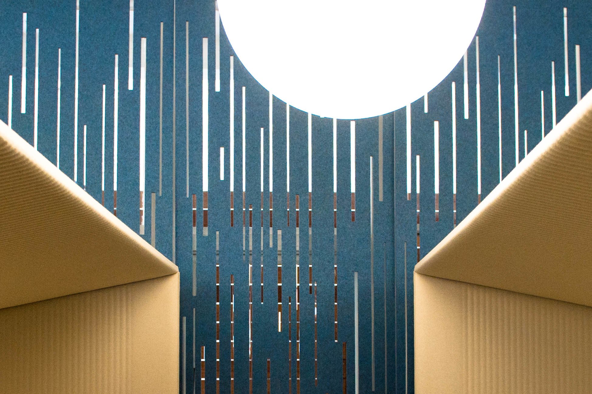 通过这种浮动的装饰面板集合创造一个隐私层,这些面板提供具有声学优势的艺术风格。它们将有助于减少声音的传递,并减轻诸如铃声之类的高音以及键入和点击的声音。它是一种优雅的元素,可将房间划分为一体。这些吸音板由双层BuzziFelt制成,采用大胆的图案进行精确切割,并具有一系列亲生物和几何图案。 您可以选择将BuzziFalls安装在墙壁或天花板上还是悬挂在上面。BuzziFalls Rail是另一种选择,它可使面板轻松滑动-创建可移动的房间隔板,从私人空间转移到公共空间。 面板在一条三米长的轨道上运行,面板从左向右滑动。通过为导轨安装两层平行轨道来创建滑动门的效果。 使用可用的新材料选项BuzziFelt Printed将BuzziFalls提升到一个新的水平 。如果您无法决定自己的喜好,请从10张照片中进行选择,并选择一张或两张照片的组合来选择不同的外观。 吸音毛毡结构可确保从正面到背面都具有充分的声学性能。它减轻了区域之间的声音传递,并吸收了高频音调,例如同事的颤音,敲打声或铃声,这使其成为开放空间中的理想空间分隔器。
