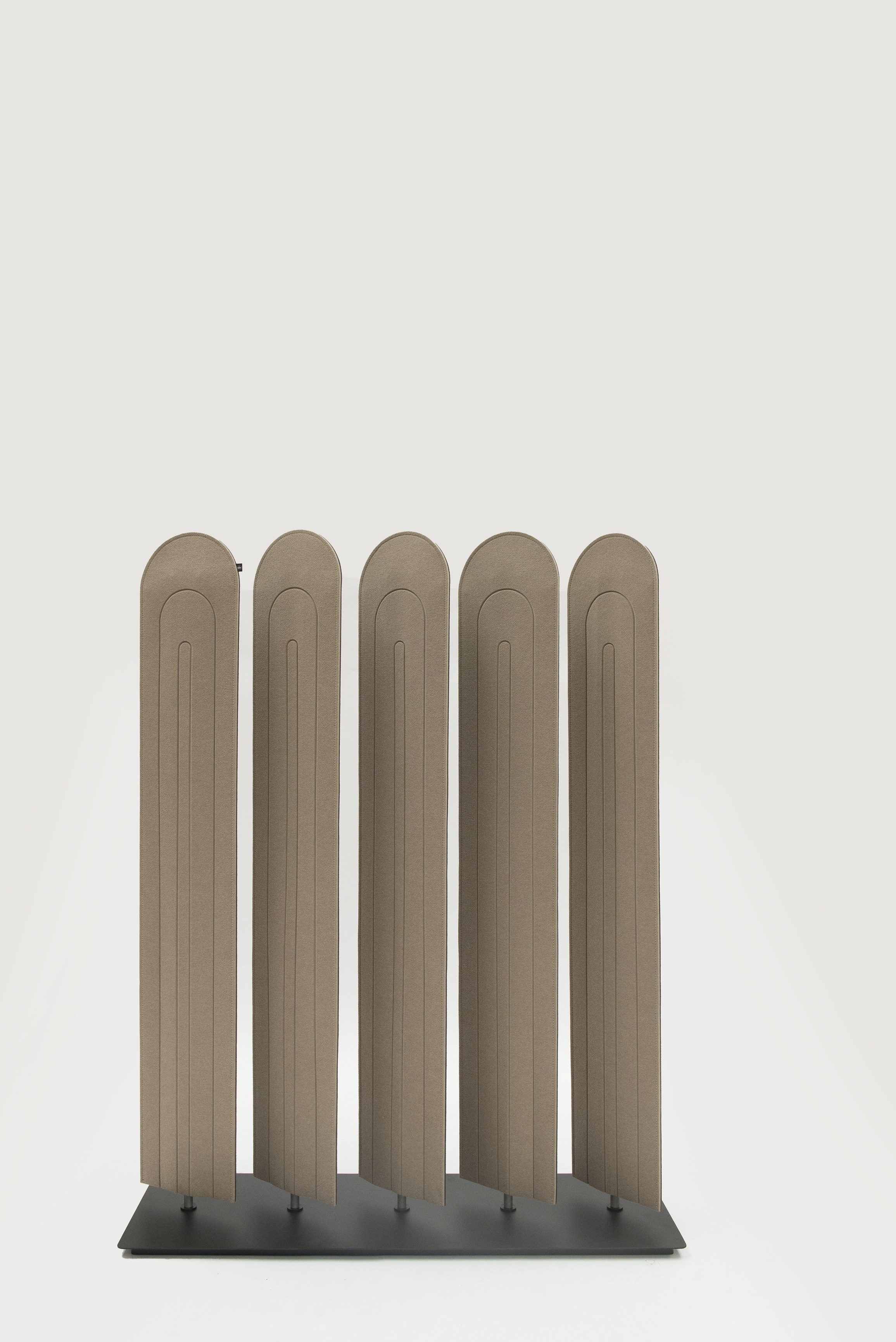 BuzziBlinds Classic于2011年推出,立即成为开放空间分隔面板的成功之选。五年后,是时候为该系列添加一些香料了。BuzziBlinds的灵感来自现代主义建筑。BuzziBlind的V形切口的定向所产生的节奏和音调为所有空间带来了动感和深度。 这个自支撑的分隔面板由一系列五个旋转的百叶窗组成。简单的旋转即可让您不同程度地打开或关闭百叶窗,以创建私人空间或开放空间。用户可以随时确定他们想要或需要专注于特定任务的隐私级别。 借助这些新的BuzziBlinds,我们希望提供创建更多个性化空间的可能性。 困难在于盲人逻辑特有的重复管理。我们的创作在视觉上不应太沉重。这就是为什么除了扩大它们之外,我们还对构成BuzziBlind的每个刀片顶部的形状进行了研究;我们还使用了Buzzispace开发的非常创新的V形切割技术,在百叶窗的外部材料上创建了图案。这些图案实际上仅通过光对隔音毡中“ V”形切口的影响以及它们的阴影才能显示出来。新的BuzziBlinds有4种不同的形状,可以直接在BuzziFelt中雕刻不同的V形图案。百叶窗可以具有不同的彩色表面,以便在百叶窗部分打开时产生有趣的视觉效果。在某些BuzziBlind上,还可以通过旋转两个刀片来创建不同的形状和新的图案。但是每个百叶窗也可以具有不同的颜色。它们也可以是直的或弯曲的... 所有这些为建筑师和最终用户提供了几乎无限的可能性,使新的BuzziBlinds成为表达自己的创造力的真正工具。