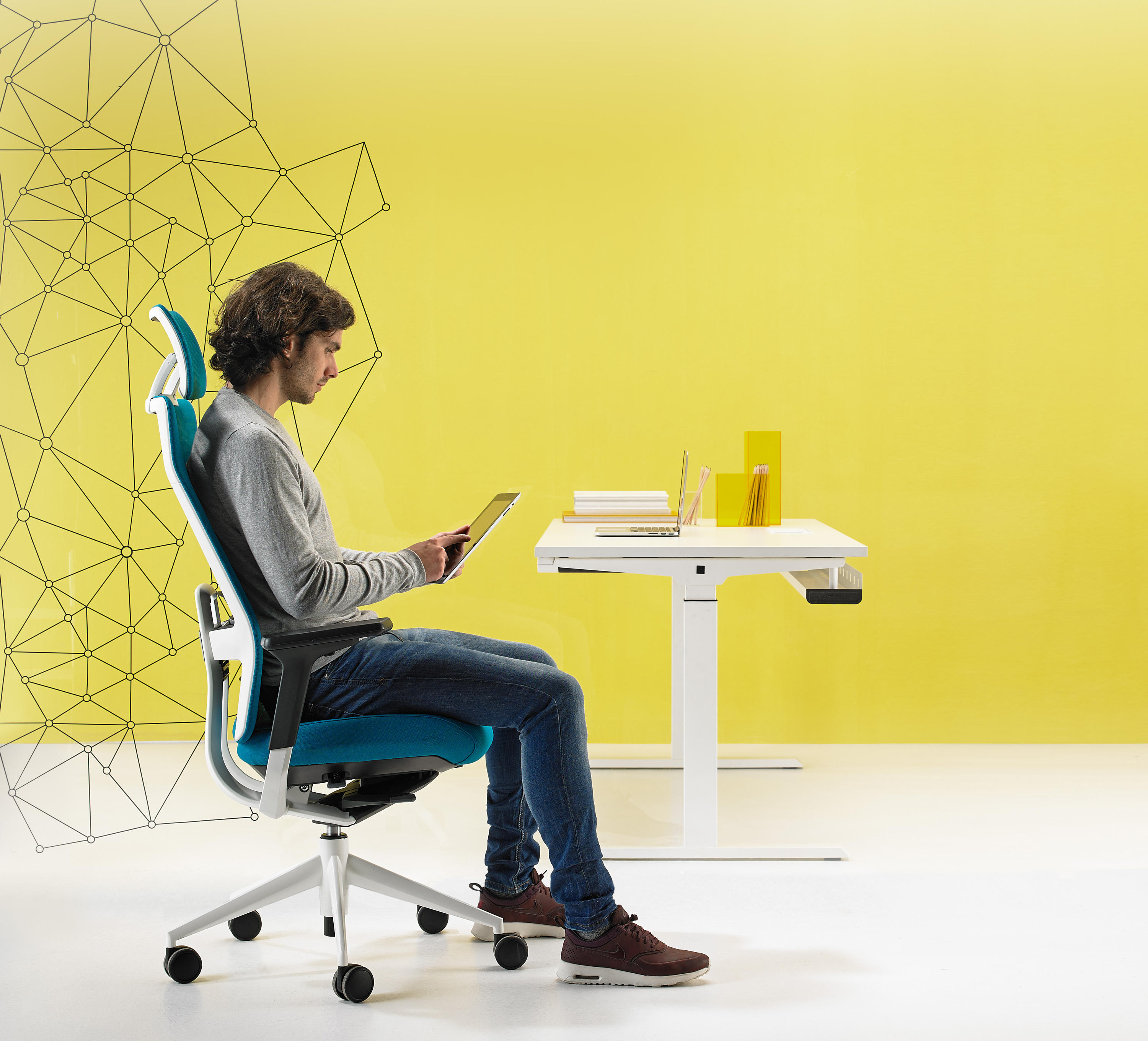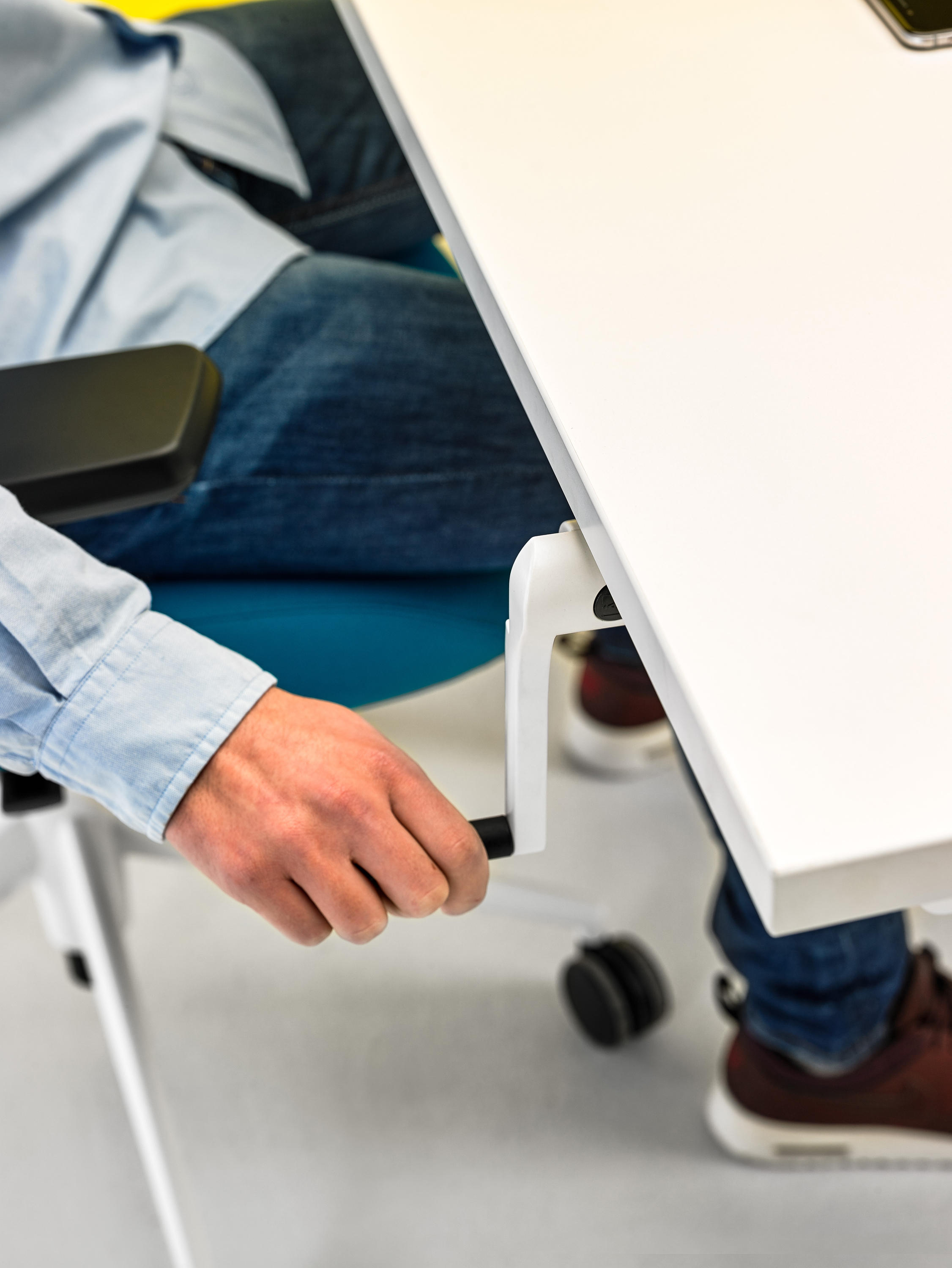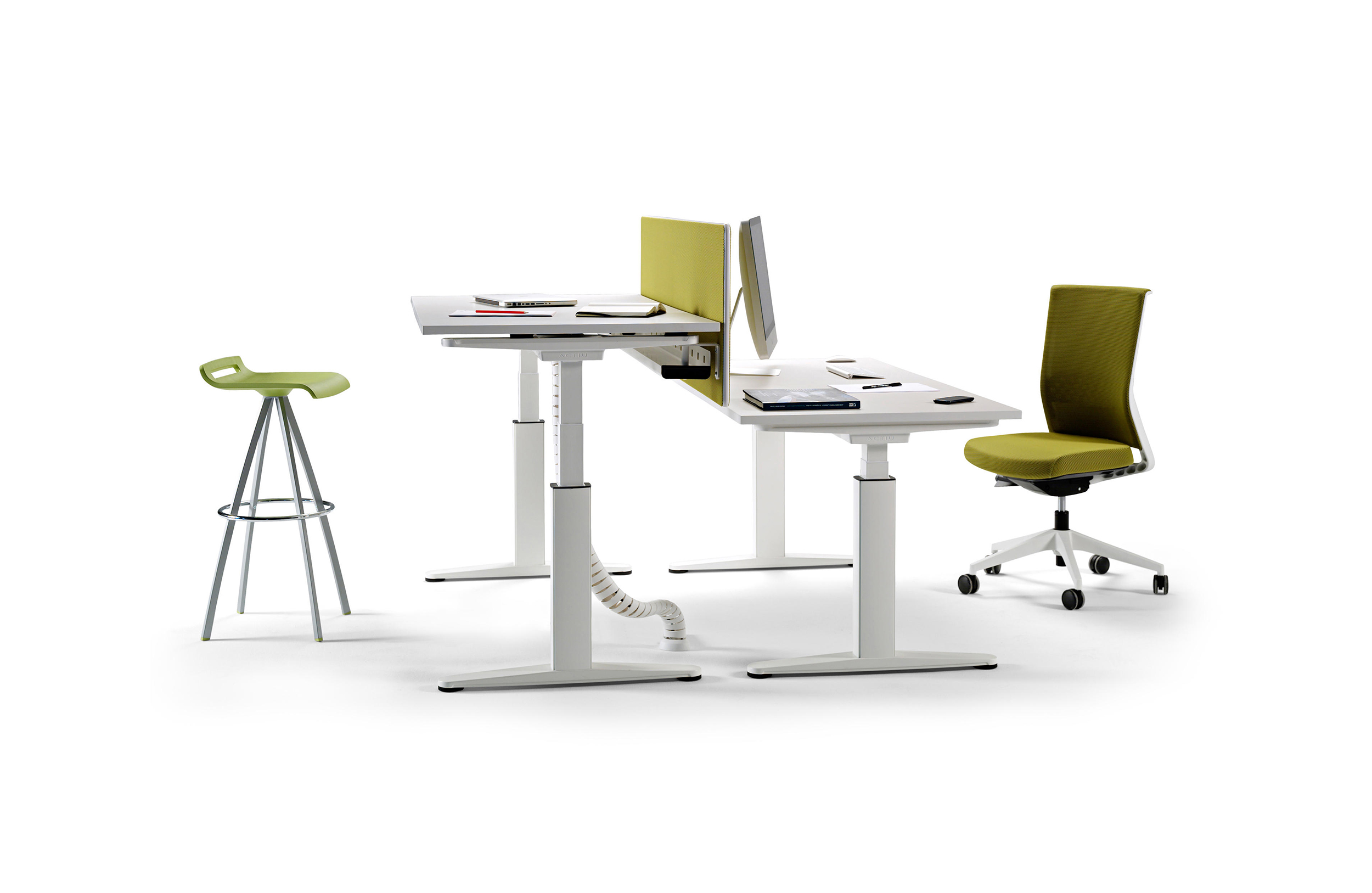 机动性办公桌,一个可以可调并固定办公桌高度的概念,在你工作的时候同步管理你的健康。在每天工作几个小时里,不仅能带来积极的健康益处,还能让员工集中精力提高工作效率。