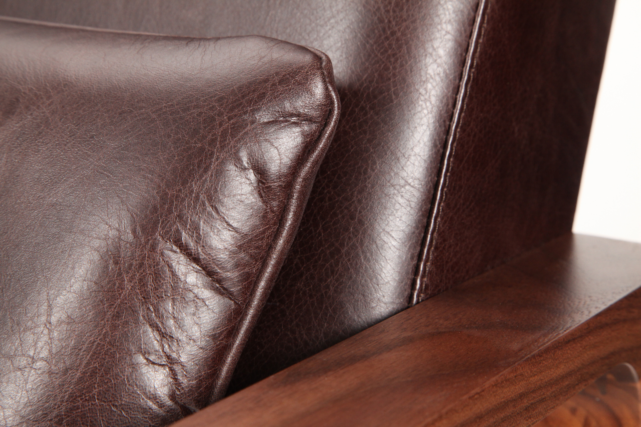 Luge系列采用黑色美国胡桃木或欧洲橡木制成的实木框架,座椅和椅背采用线性针脚细节设计。 框架上的梳形接头和斜边细节完成了令人惊叹的效果。