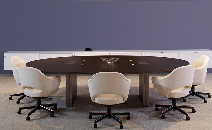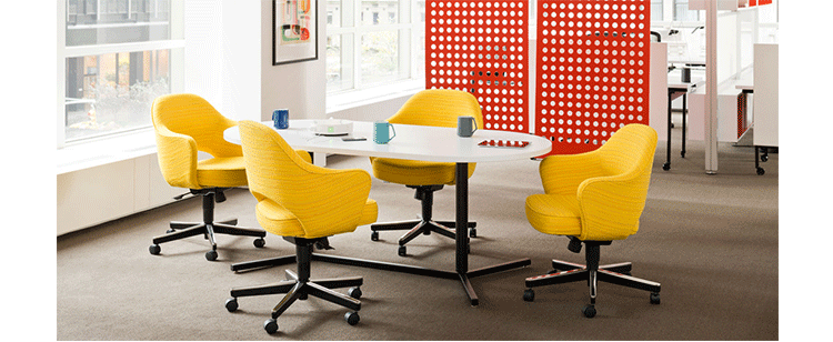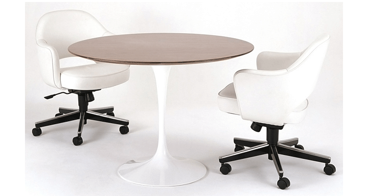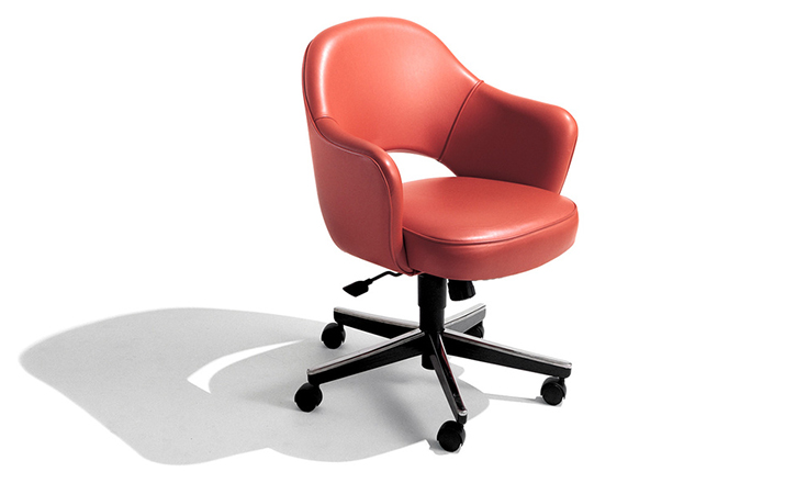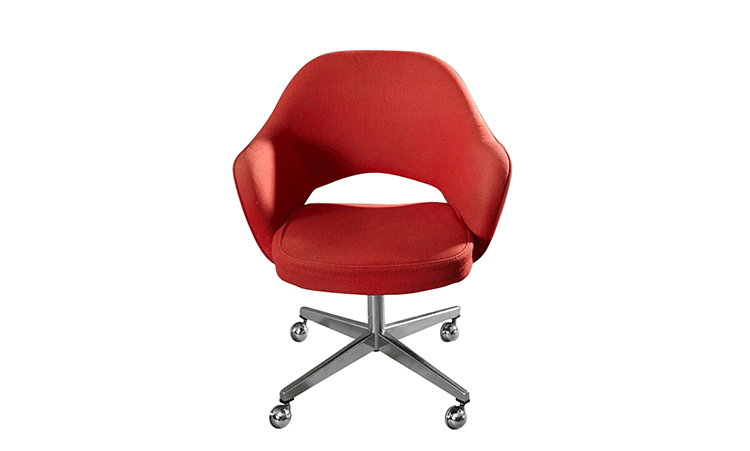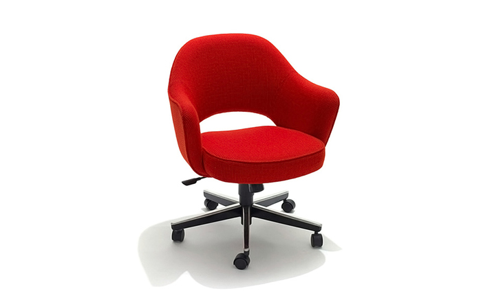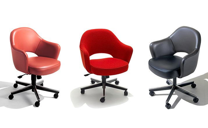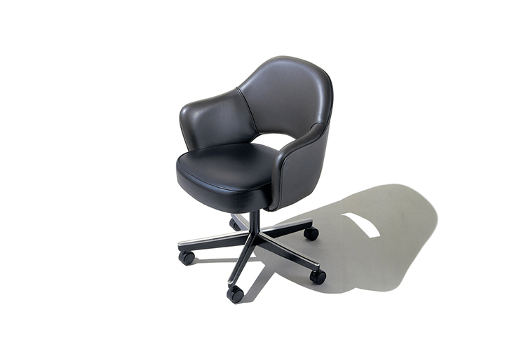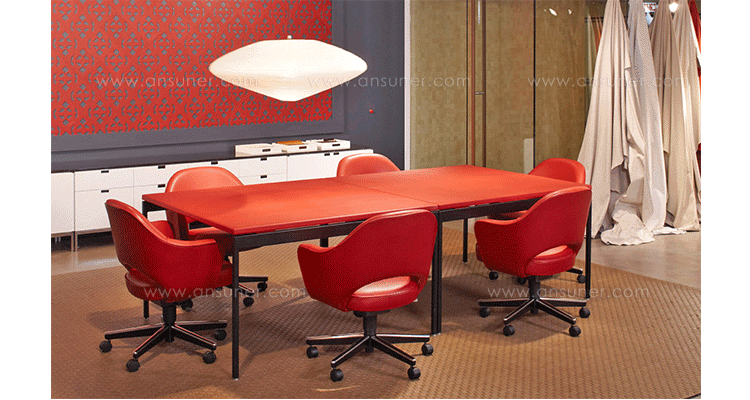 In his groundbreaking collection of 1957,Eero Saarinen transformed executive seating into a fluid,sculptural form.Recognizing the importance of user comfort,Saarinen became the first to construct a chair shell from fiberglass,a pliable material that flexes the In response to body weight.The chair is available with and without very different,and the features metal or wood legs,or a swivel base.The armless chair with a plastic back,ideal for cafe applicatons, is a recent reintroduction.