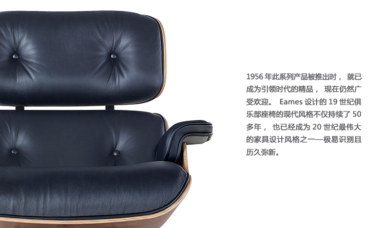 1956年知名由夫妻档设计师Charles & Ray Eames发表的lounge chair&Ottoman历经50多年的岁月,仍被视为现代家具史上最重要的经典设计家具之一,已经成为美国最重要的现代艺术博物馆MOMA的永久收藏品;椅子的压铸铝制部分则是以铝合金镀鉻,让整体视觉呈现轻盈興现代感.