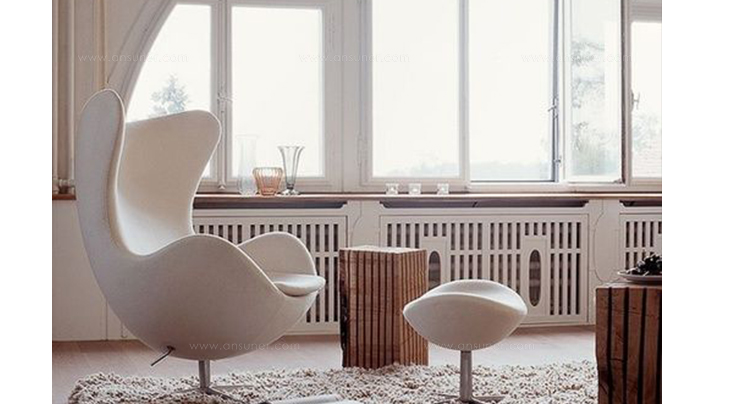 他将自身对建筑的独特见解延伸家饰品,并为一手绘制的建筑结构装点添色,因而摧生出如长着三只细腿的蚂蚁椅(Ant Chair)、蛋椅(Egg Chair)、天鹅椅(Swan Chair)、The Oxford chair等旷世之作,以及雅宅、工厂、展示间、织品、时钟、壁灯与门把等无计可数的多元创作
