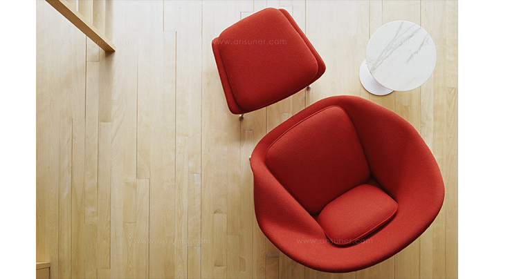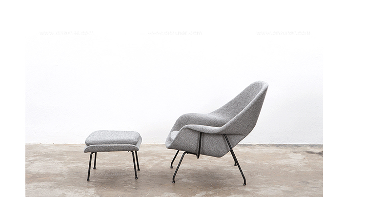 设计师 Eero Saarinen 设计这款 Womb Chair,是为了提供更轻松的坐姿,让身体完全的放松,有一种被拥抱的感觉,故如其名 “Womb Chair"(子宫椅),犹如新生胎儿在母体子宫内般舒适、温暖与安全。