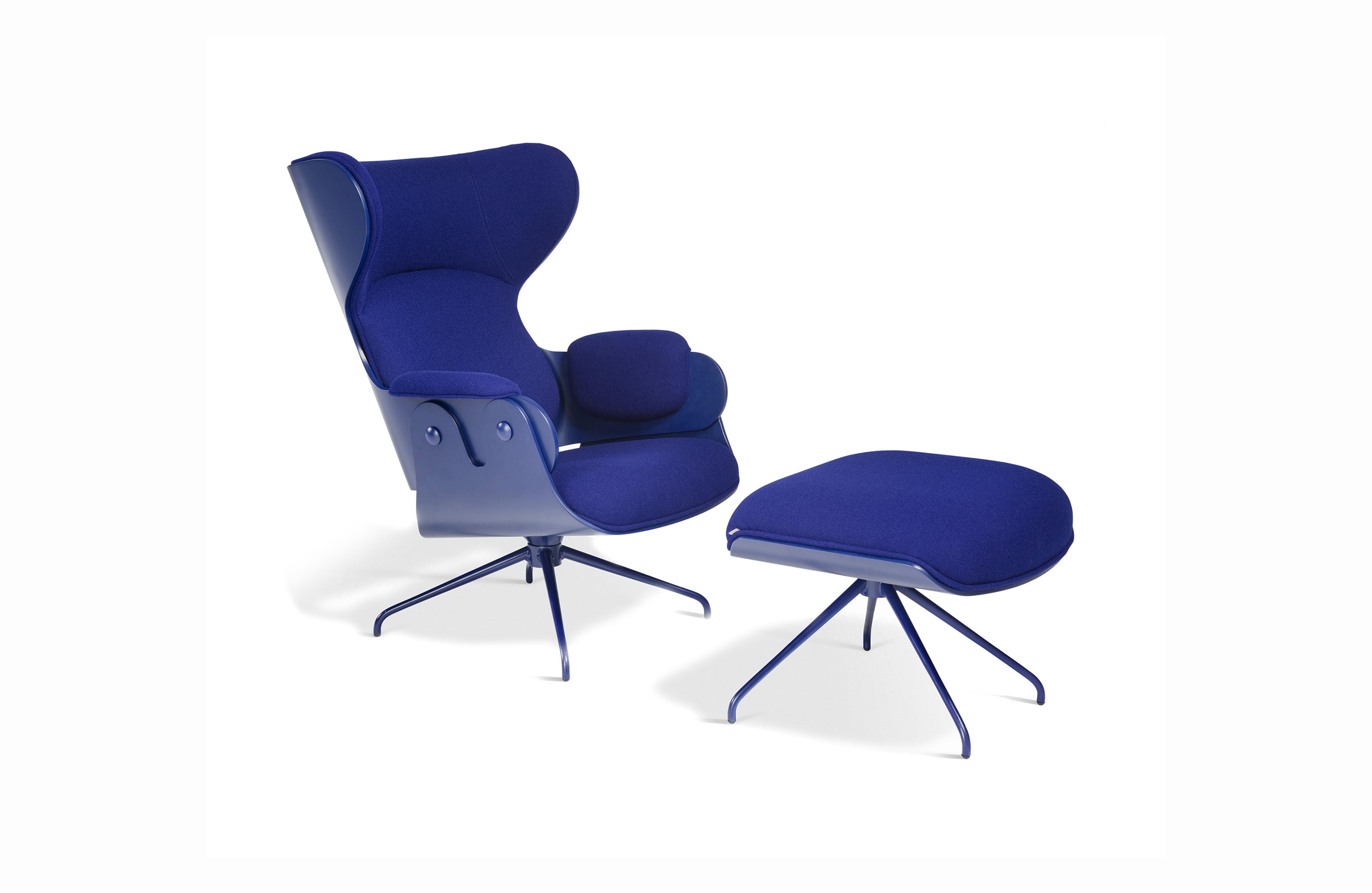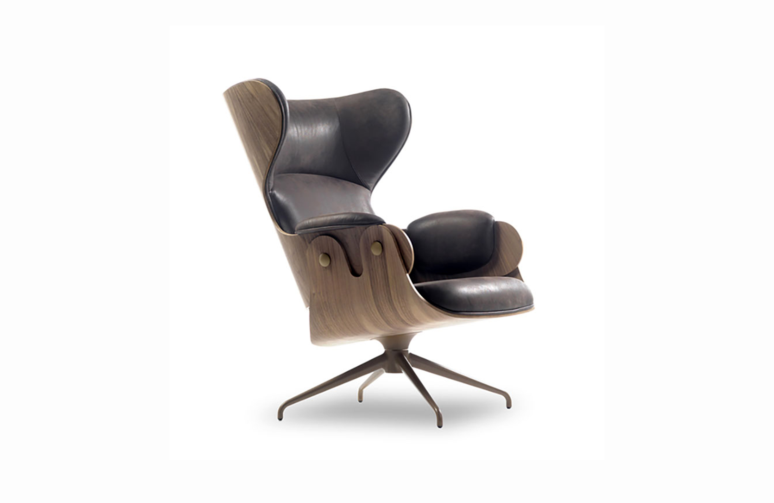西班牙设计顽童 Jaime Hayon 2010 年在米兰家具展上再次吸引所有人的目光,Jaine Hayon 与西班牙家具厂牌 BD Barcelona Design 合作的 Showtime 系列家具自推出后俨然成为Jaime Hayon 个人的经典代表作,在 2010 年加入了新成员 Showtime Lounger 休闲椅,当中似乎不难发现有着 Charles & Ray Eames Lounge Chair and Ottoman 的影子,重新诠释这张20世纪经典椅款 Hayon 对设计大师致敬的同时,也注入更多 Hayon 幽默诙谐的设计手法。 Showtime 系列家具主要使用的材质和构造包括:优质夹板压模贴木皮而成、进口头层牛皮或进口羊绒布、内部填充高密度海棉、优质铝合金脚架。