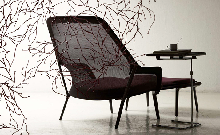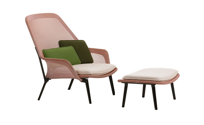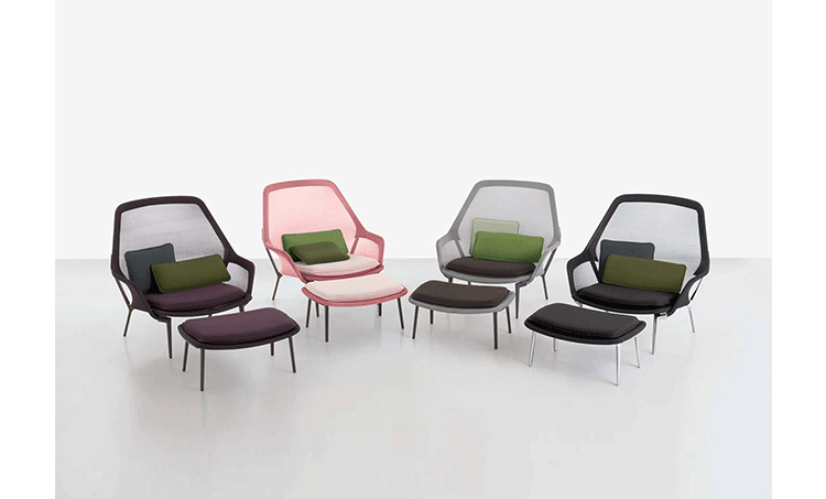 由Ronan 和Erwan Bouroullec 的设计组合打造,出自2007 年的作品,Slow Chair 为一款结合多种精致工法的设计作品,金属加弯勾勒出椅子主体,再以高科技的纺织样貌加以包覆,完成了椅背和座椅的形貌勾勒后,看似坚硬的印象,却在网状的织面结合下,兼富坚固,却保有弹性舒适的乘坐体验。然而,在座椅处,更加上了柔软的聚酯、羊毛坐垫,让整体舒适度,再向上提升一层。降低乘坐高度的设计,让Slow Chair 在搭配椅凳之后,又是休闲椅,又宛如一张让人放松的Lounge Sofa,由您去定义最适切的乘坐方式。在午后,在闲适的美好时光,好不令人陶醉。Slow Chair 极致轻量的风格打造,让您讶异于家具工业的快速演进和丰沛创意。坐垫卸下、和靠枕搭配,尽如你意,带来多种可能的使用乐趣。Slow Chair 四种色款,搭配内容如附图,无法另外客制订购,请依您所喜爱样式,挑选订购,每张Slow Chair 内含座椅、坐垫、及靠枕两件;此外,椅脚有深紫漆面或抛光亮银两种选择。