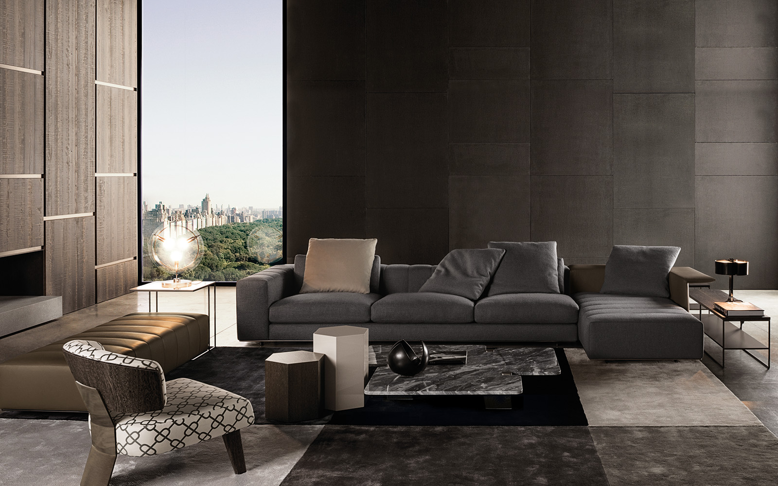 Creed沙发系列极具个性风格,搭配2016系列中的各类产品均能达到相得益彰的效果,尤其是与Bellagio “Lounge”桌搭配,两者的组合可以打造出别具一格的环境氛围。Creed家族成员包括多款沙发椅,每件产品在设计时都考虑到其摆放的精确位置,同时兼顾用途和风格的和谐统一。Creed系列产品的比例设计精益求精,因而不仅可以和谐地融入居住空间,还可以用在接待场所,如等候室、前台区域、行政办公室。饱满而又舒适的造型,精致的表面包覆,一丝不苟的细节,这些就是Creed “Lounge”沙发的特质所在,使其成为居住空间的主角。