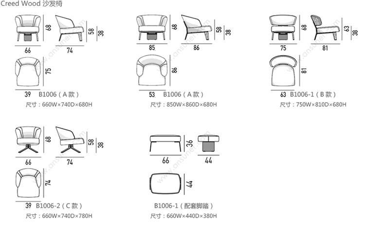 Creed 沙发椅 系列尺寸/示意图