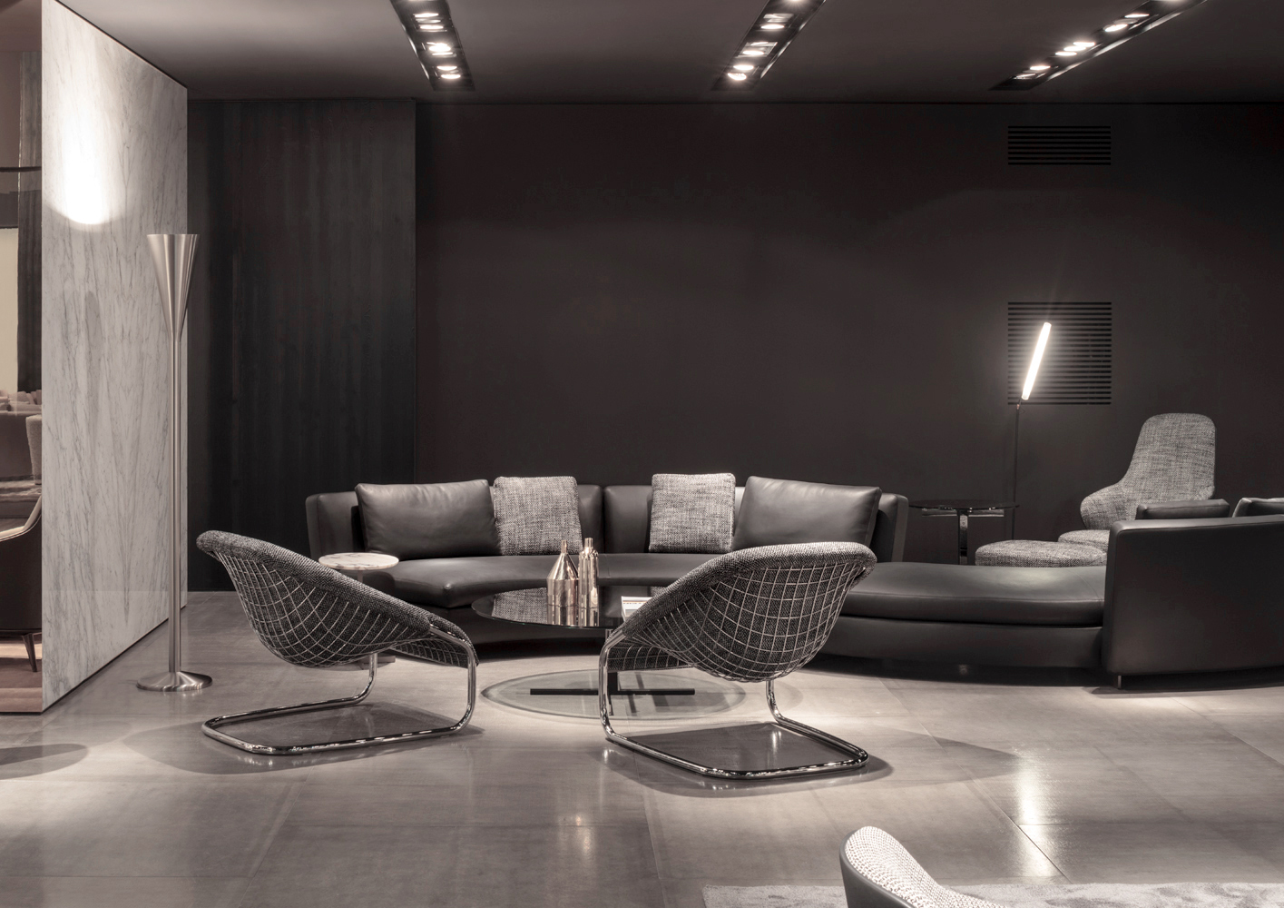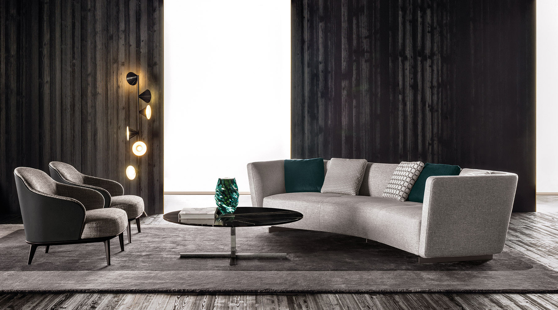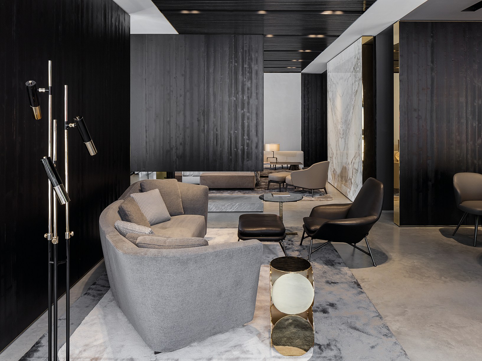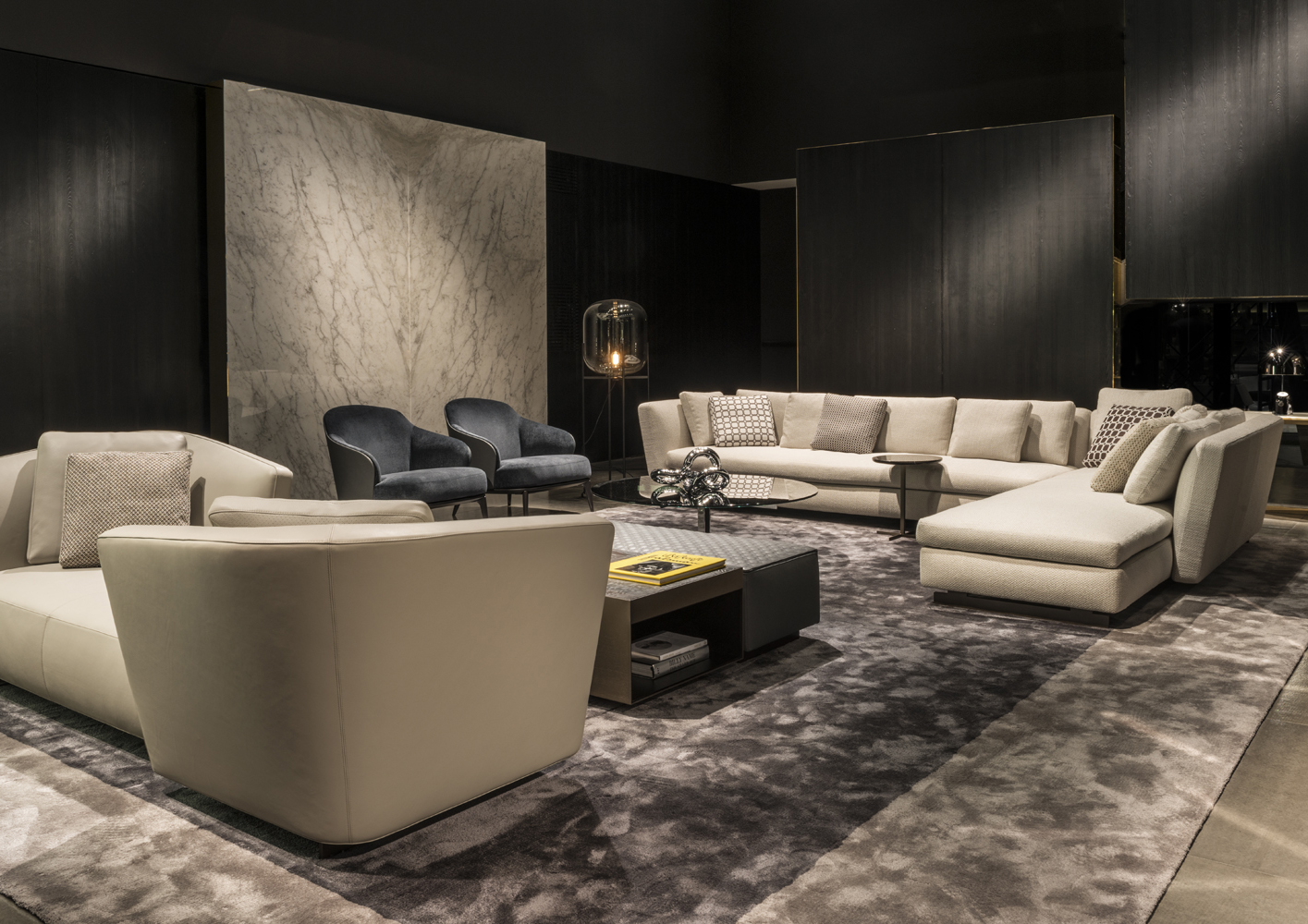 如果说Catlin边柜的设计崇尚简洁,那么材质的选择则旨在打造非凡的视觉和触觉效果。金属基座有着精致的十字形地面支撑腿,其中包括颇有趣味的组合:黑色压花搭配铬色或金色的抛光表面,打造出多种多样的风格。材料的搭配体现出非凡的优雅感,台面可以选择两种珍稀名贵的大理石,Arabescato Purple或Sahara Noir,两者都拥有抛光表面。
