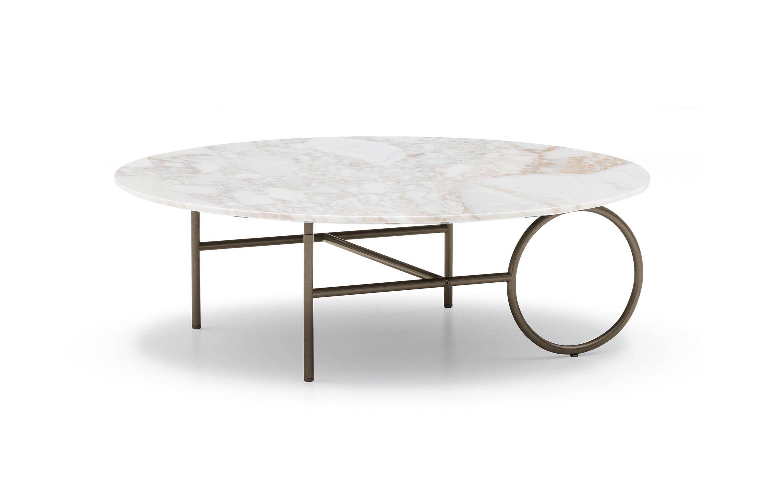 由正交线定义的轻金属结构的设计被大环打断,放置在不同的位置。除了打破轮廓的几何规律性外,圆形,取决于桌子的大小,成为连接或支持元素。眼睛被光环中心的空虚所吸引,产生了空间和轻盈的效果。