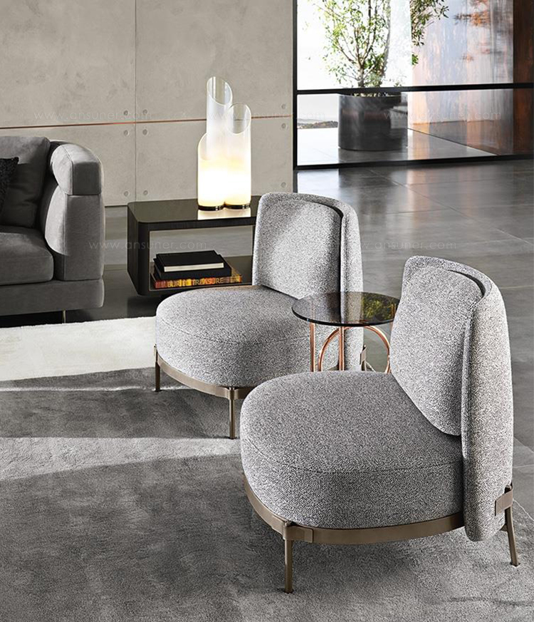 这种金属框架,有轻青铜、铜或黑镍,有不同的高度。圆桌由椭圆形或圆形顶部完成,直径不同,可在青铜玻璃、卡拉卡塔大理石或甘草刷灰中定制。