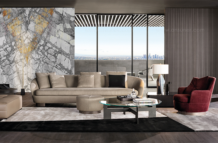 边几的直径为30厘米,其材质只推出淡金色亮光金属表面的版本,极具装饰风格,同时又不失现代感。