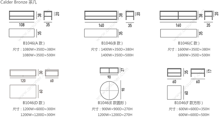 Calder Bronze 茶几 系列尺寸/示意图
