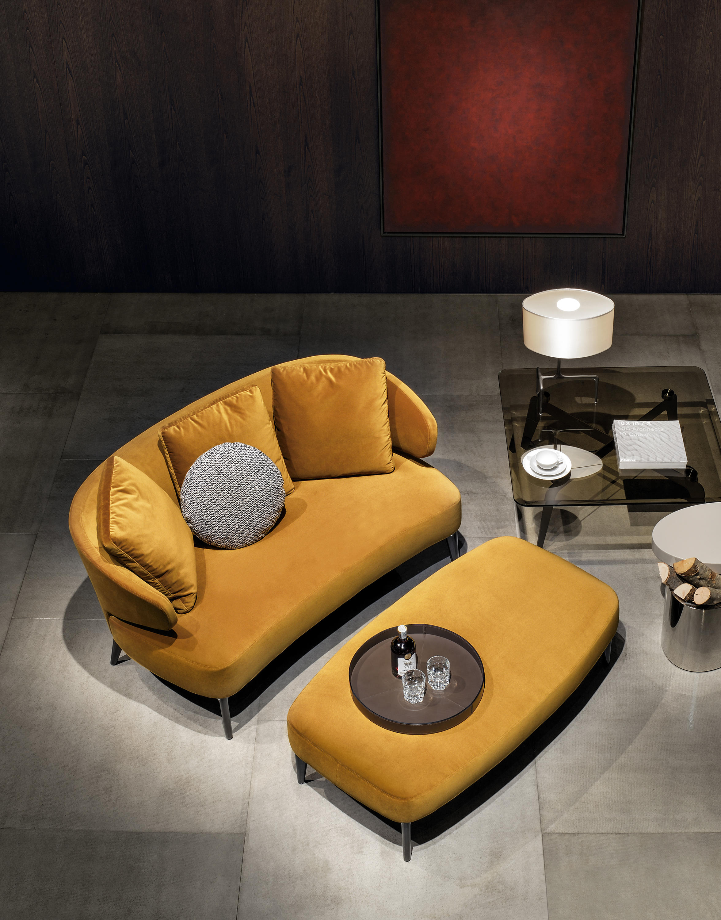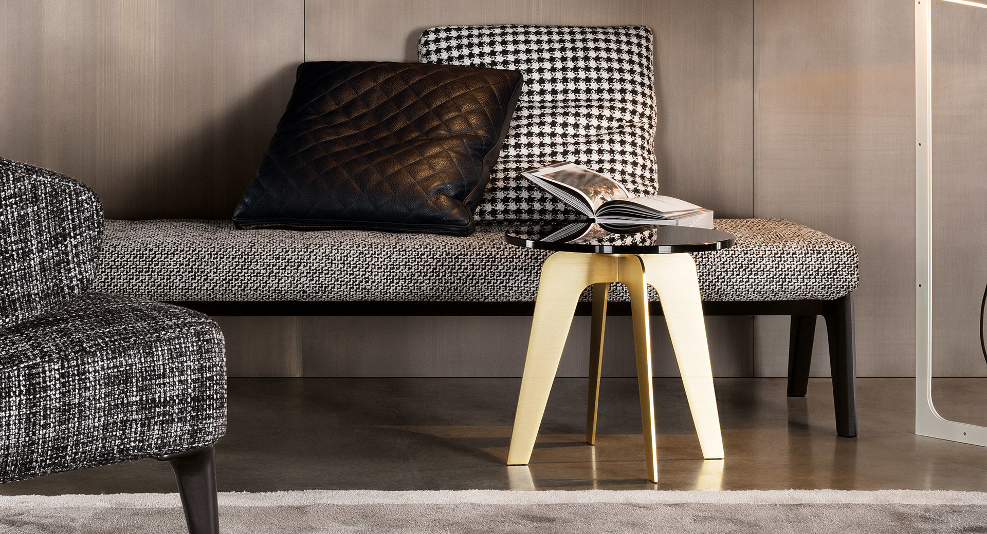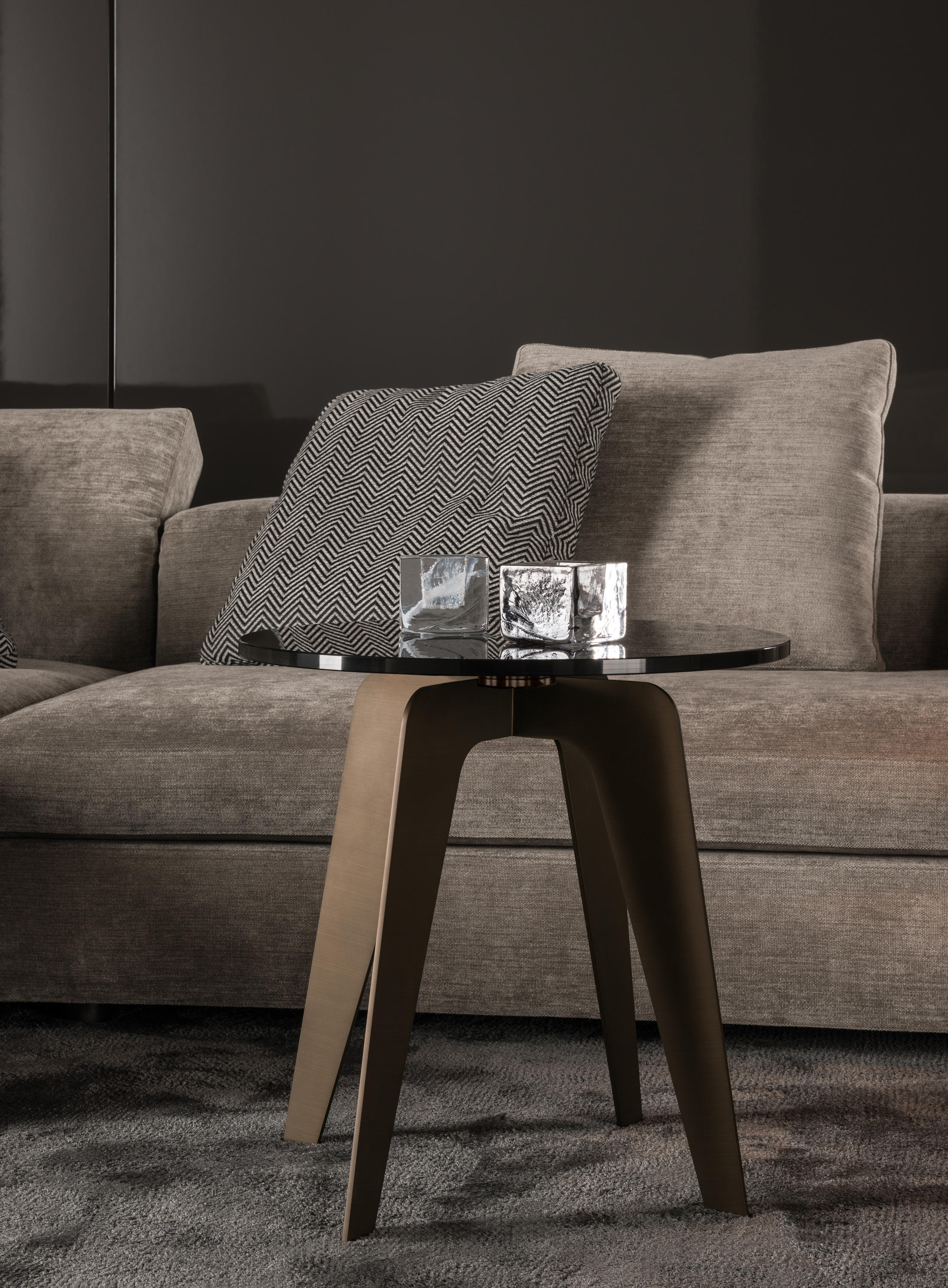以精美梣木底座致敬传统黑檀木艺术,搭配拥有圆滑转角与柔和饰边的光泽漆面黑檀木、黑色脱蜡琉璃及 Marron Damasco 大理石台板。