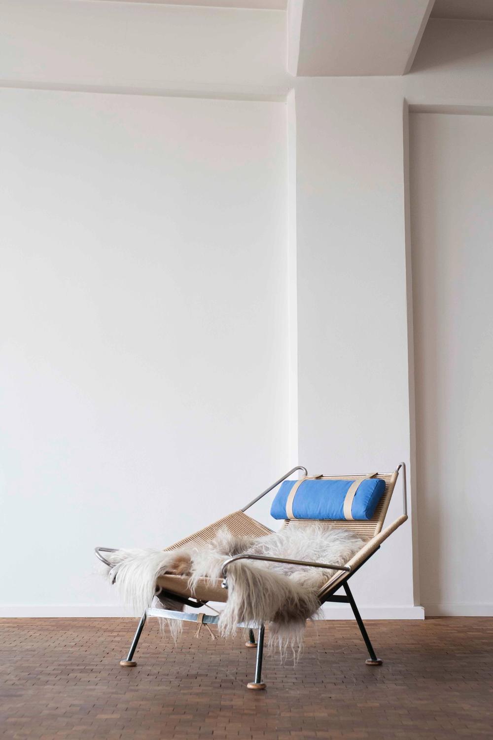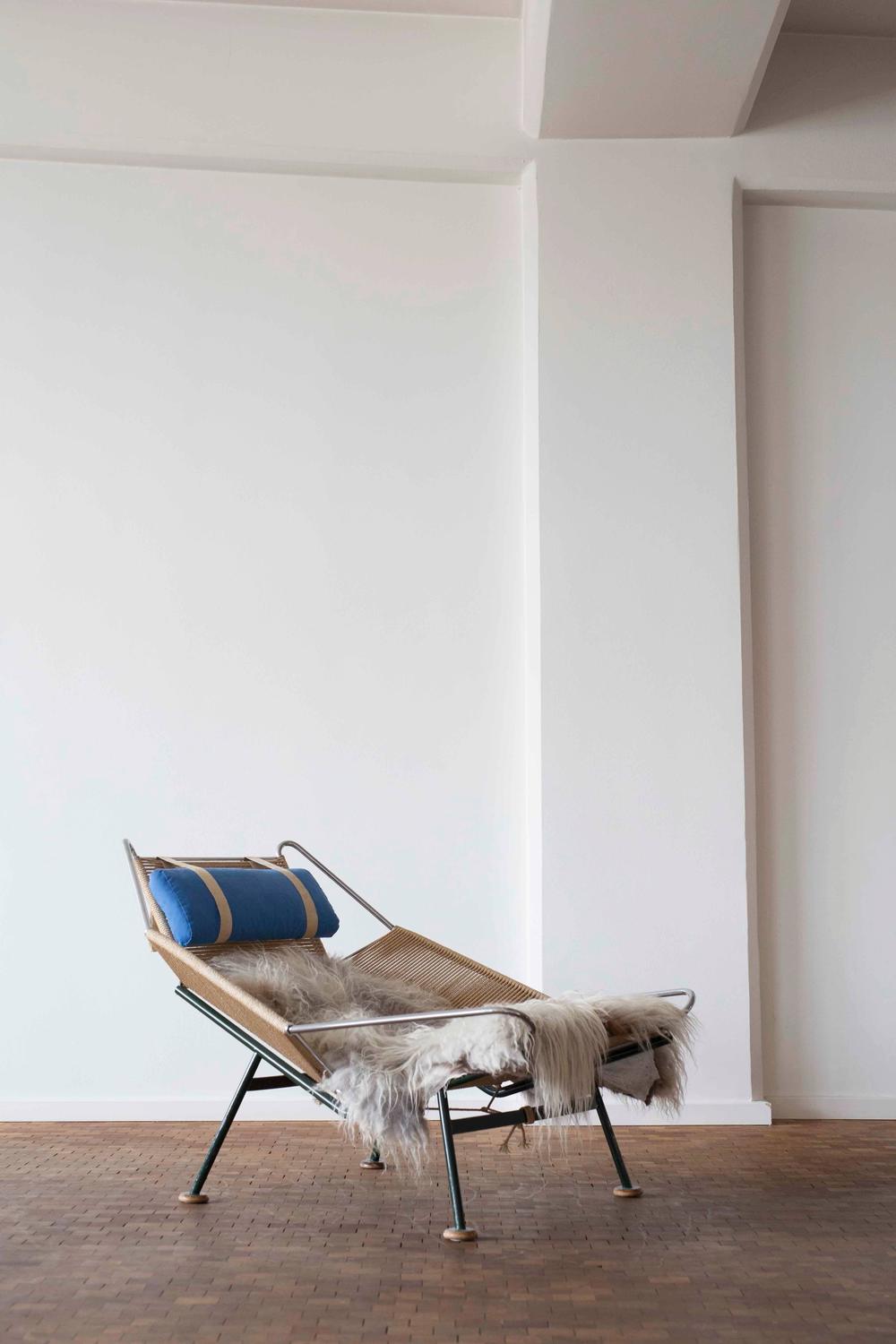 设计于1950年,帆船旗椅的形状和风格最初是由于全家去海滩旅行而构思的。当孩子们在海边玩耍的时候,魏格纳正忙着在沙滩上做一把椅子,以创造一个舒适和放松的地方,在那里他可以享受炎热的夏日。回到避暑别墅后,魏格纳用他在海滩上创作的角度,起草了他的第一张草图。