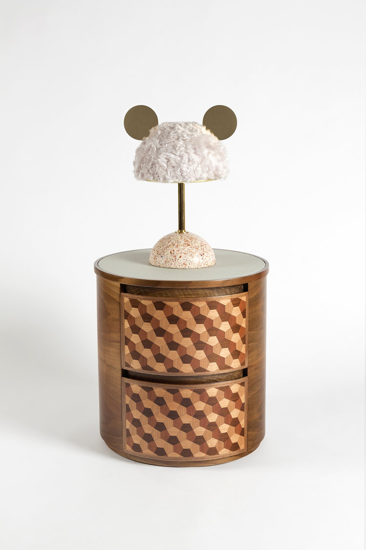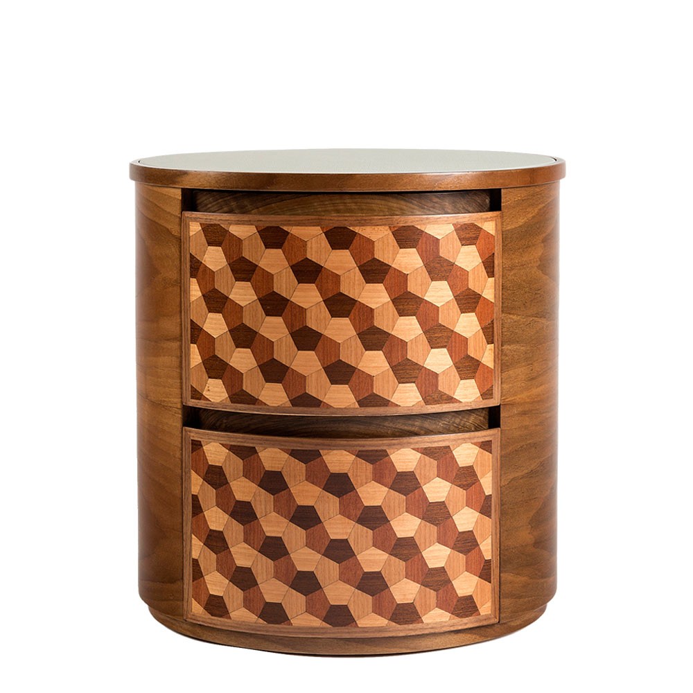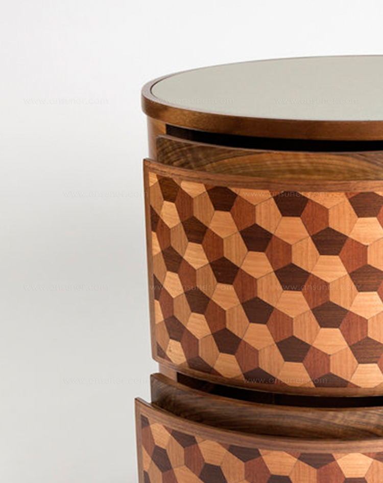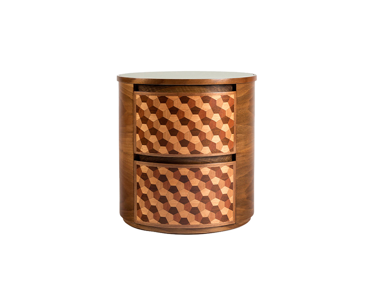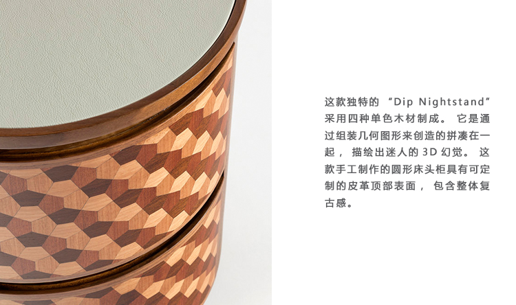 这款独特的“Dip Nightstand”采用四种单色木材制成。 它是通过组装几何图形来创造的拼凑在一起,描绘出迷人的3D幻觉。
