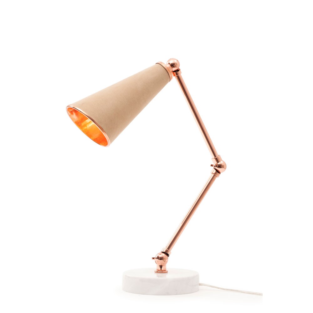 Lanterna(兰特纳)是一款带有心脏的新时代机器人灯。 独特的纹理材料,如毛毡,软木和牛皮,结合了白色和黑色的大理石和闪亮的金属,如黄铜和铜。 Lanterna的可调节臂使用户能够证明灯的形状和位置。 Lanterna可用作台灯或床边照明。