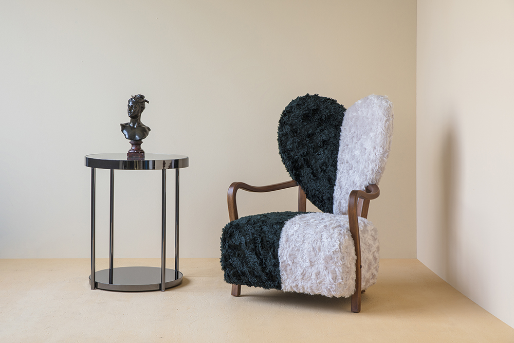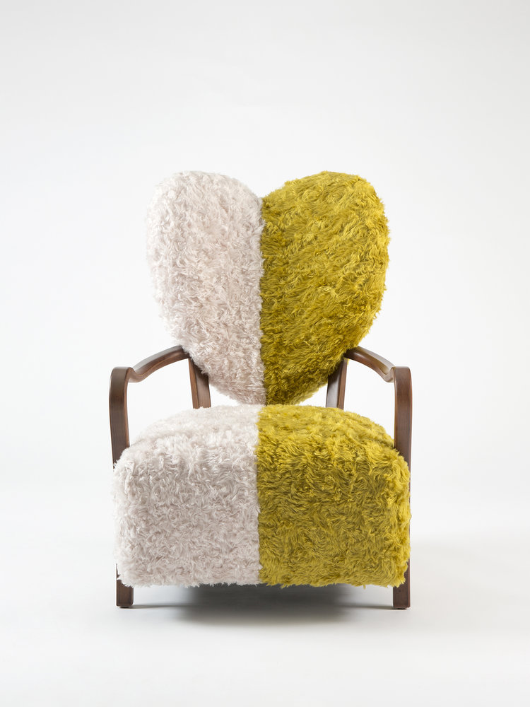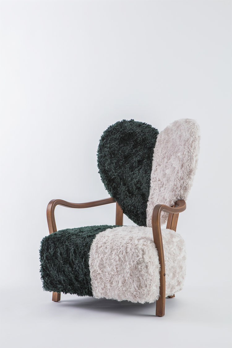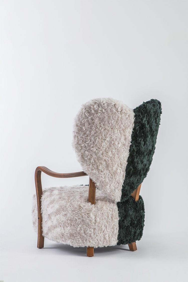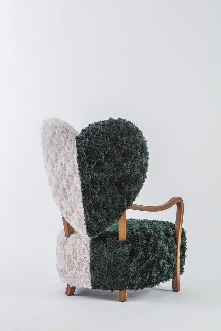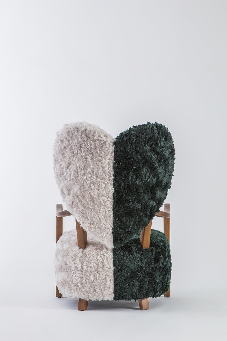 致力于所有破碎的心灵,UNI代表着灵魂的分离和统一。 森林绿和奶油的对比反映了任何两种生物之间的差异以及它们组合的美感。 在轮廓中看到,扶手椅看起来完全是绿色或完全奶油,取决于您的有利位置。