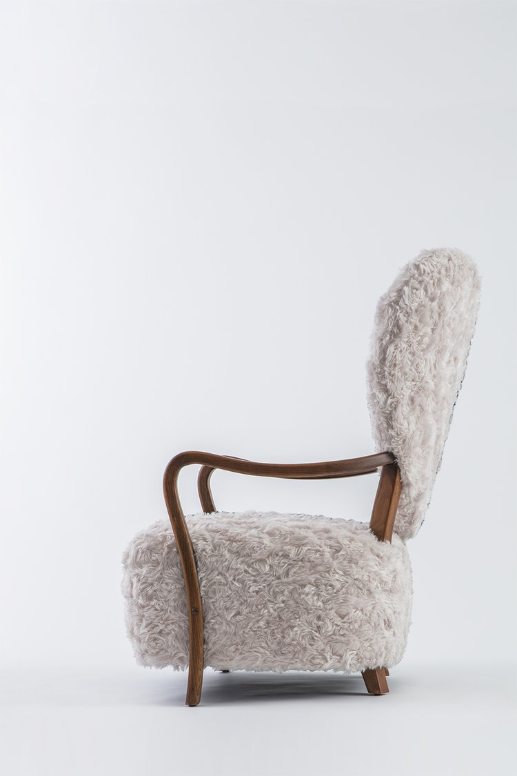 Uni装有来自安哥拉山羊的100%马海毛。 深卷曲的桩子创造了被包围的感觉,同时也捕捉光线。