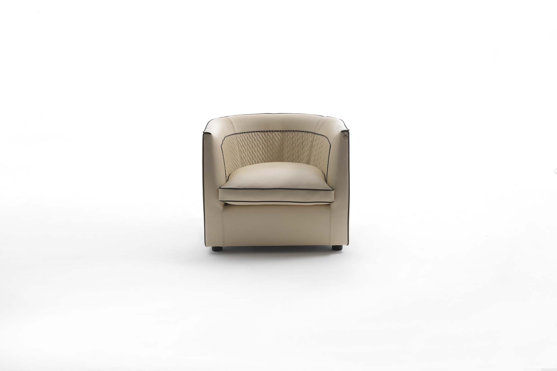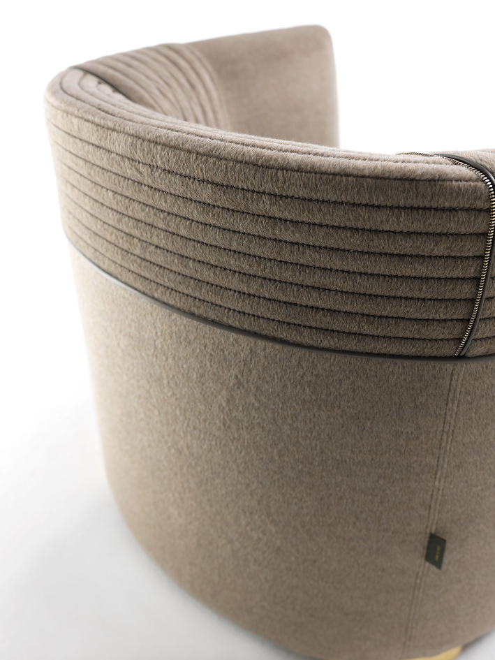 圆形形状让这看起来欢迎扶手椅适合放松和享受一个愉快的谈话