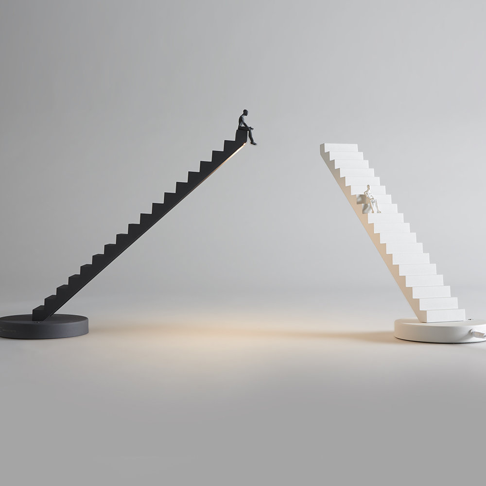 Verso台灯,它的设计目的是使一个普通的技术对象戏剧化,并在灯关闭时提供一种功能,这就是雕塑。“从A点到B点,空间中的日常活动被最著名的建筑建筑工具——楼梯所吸引。就像在建筑中一样,Verso的光线也发生了同样的事情,被送到合适的高度来照亮平原。如果点B不是唯一的目的地呢?