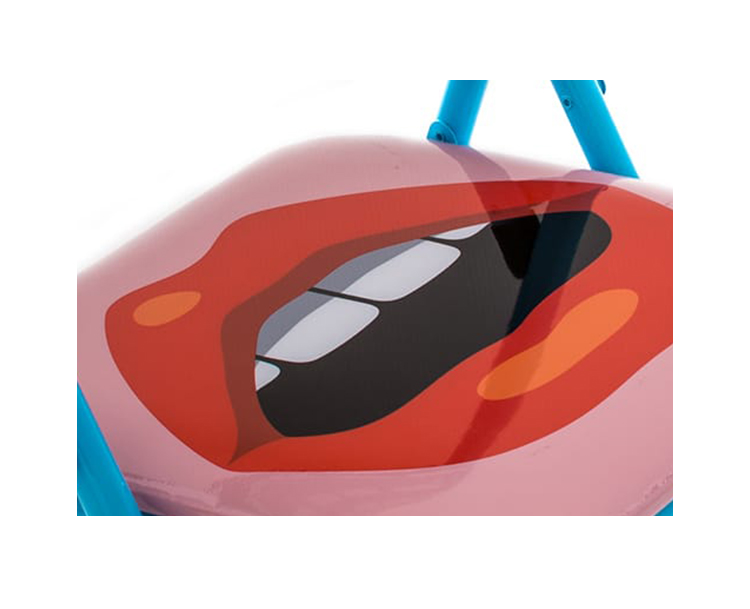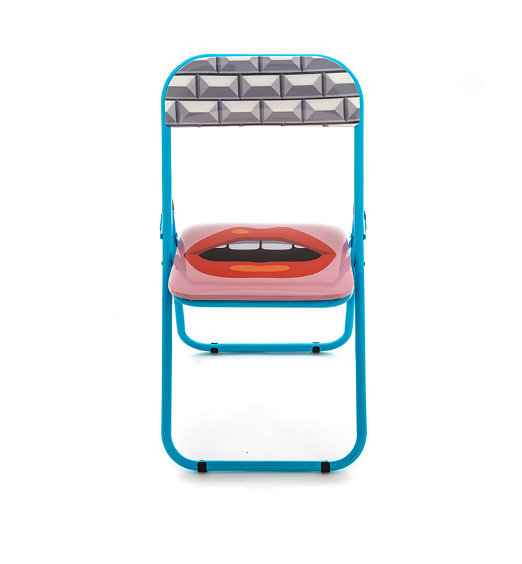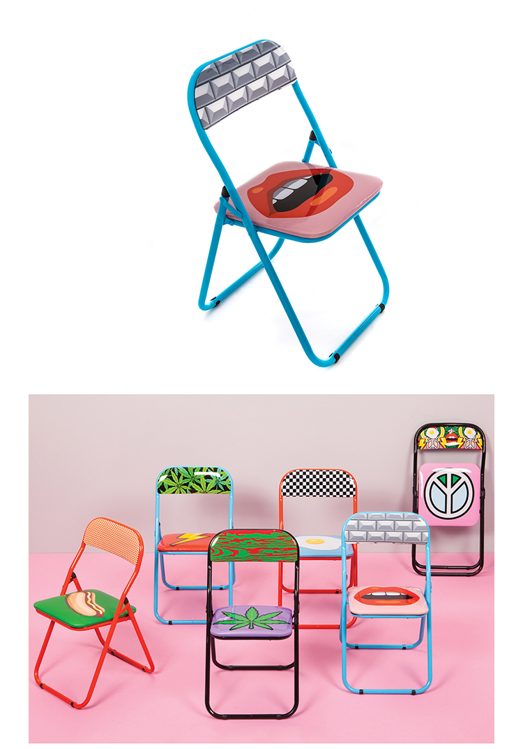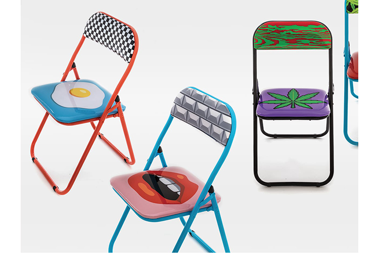 波普艺术。一系列色彩艳丽的折叠椅,装饰古怪、标新立异