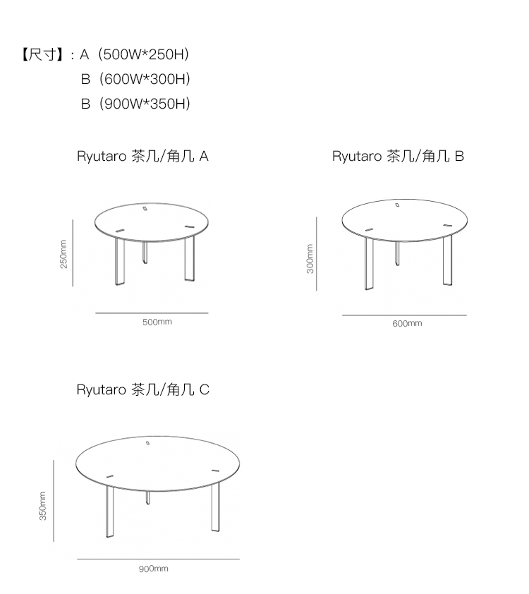 Ryutaro 茶几/角几 系列尺寸/示意图