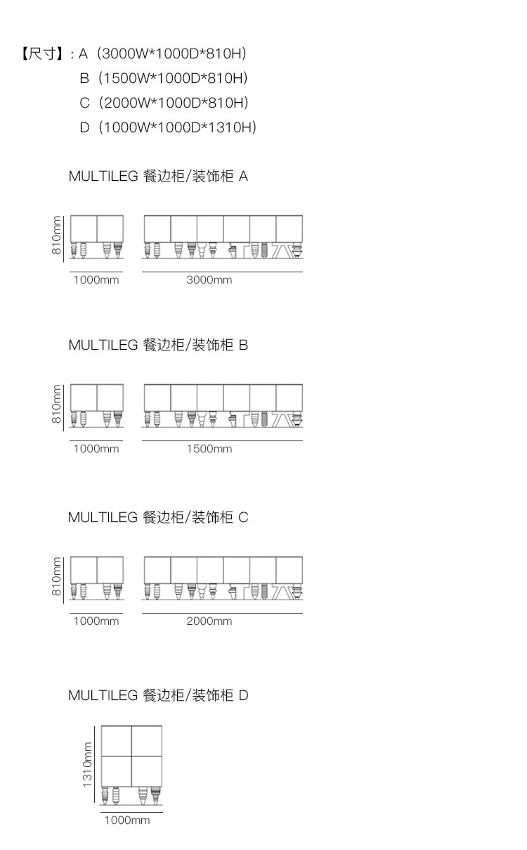 MULTILEG 餐边柜/装饰柜 系列尺寸/示意图